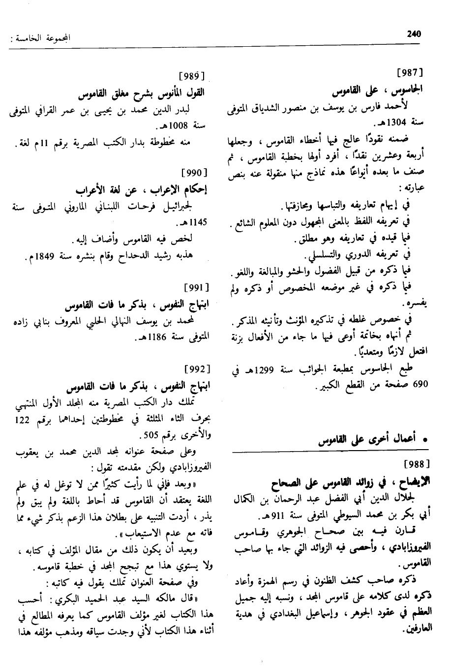[991] ابتهاج النفوس، بذكر ما فات القاموس لمحمد بن يوسف النهالي الحلبي المعروف بنابي زاده المتوفى سنة 1186 ه.