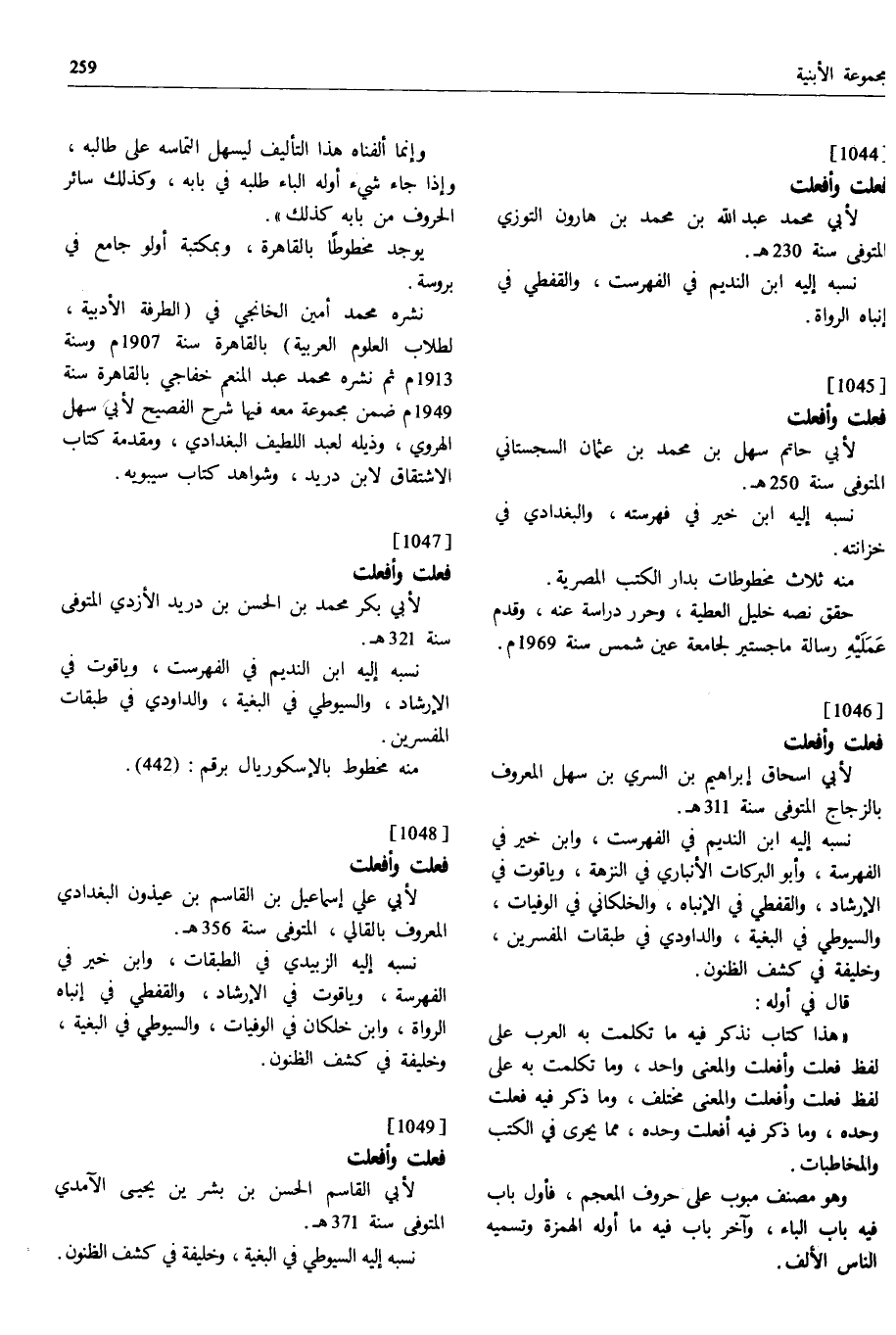 [1047] فعلت وأفعلت لأبي بكر محمد بن الحسن بن دريد الأزدي المتوفى سنة 321 ه.
