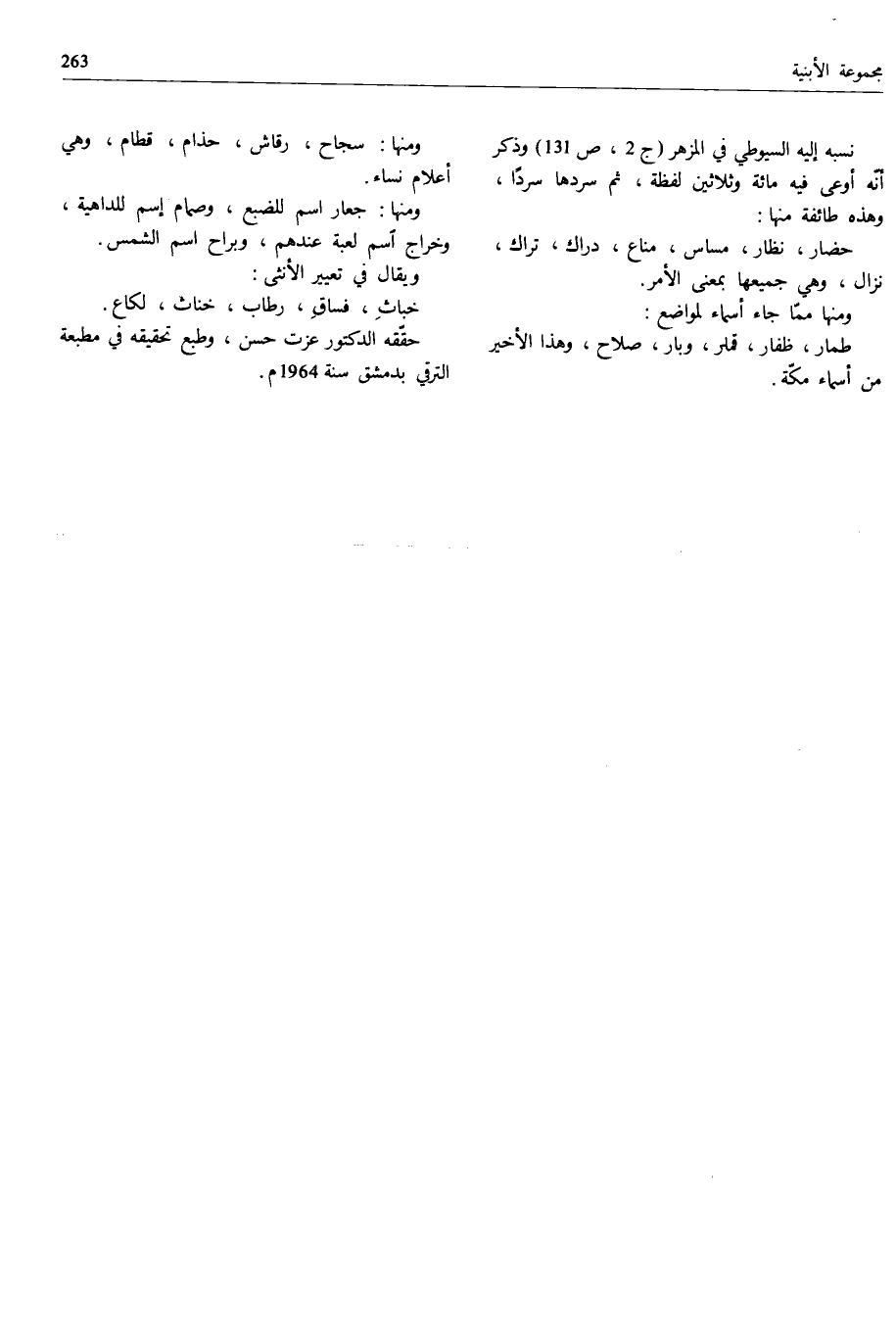 ومنها: جعار اسم للضبع، وصمام إسم للداهية، وخراج اسم لعبة عندهم، وبراح اسم الشمس.