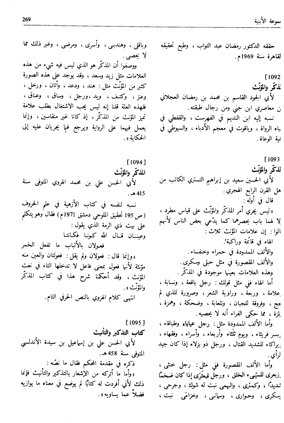 [1095] كتاب التذكير والتأنيث لأبي الحسن علي بن إسماعيل بن سيدة الأندلسي المتوفى سنة 458 ه.