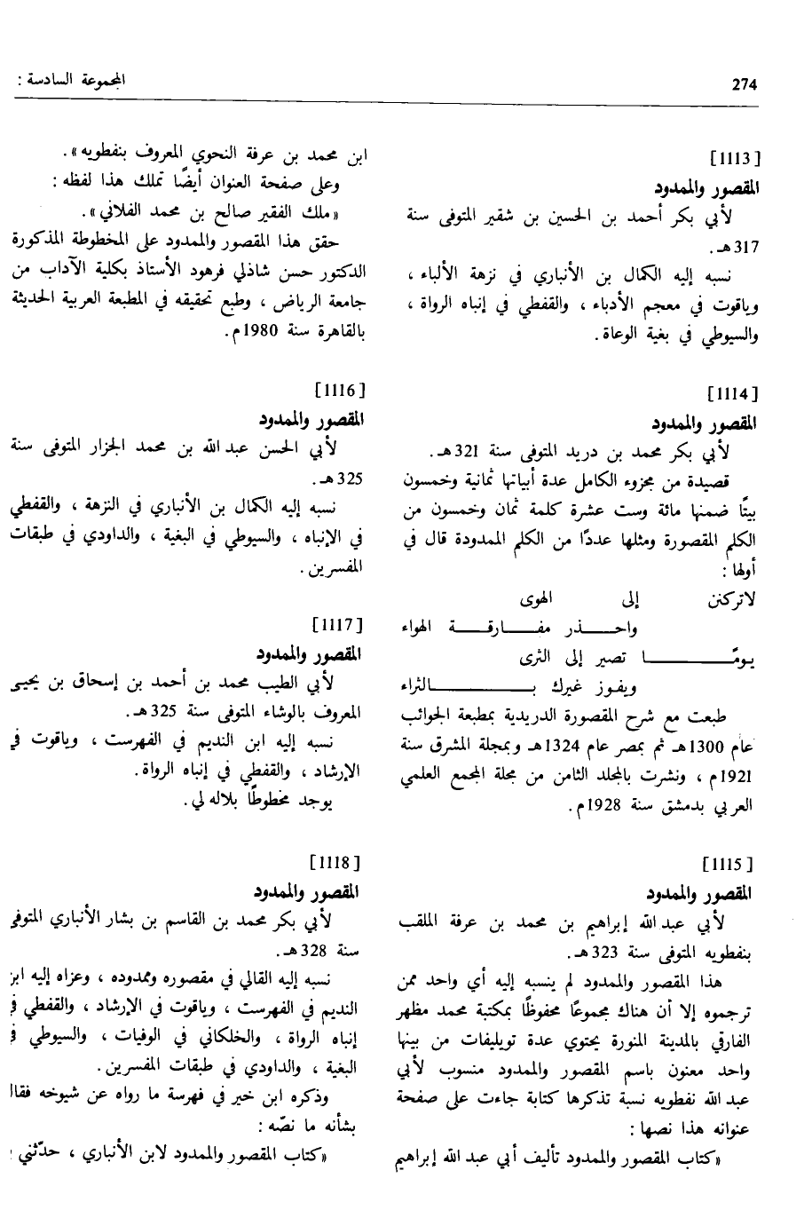 [1115] المقصور والممدود لأبي عبد اللّه إبراهيم بن محمد بن عرفة الملقب بنفطويه المتوفى سنة 323 ه.