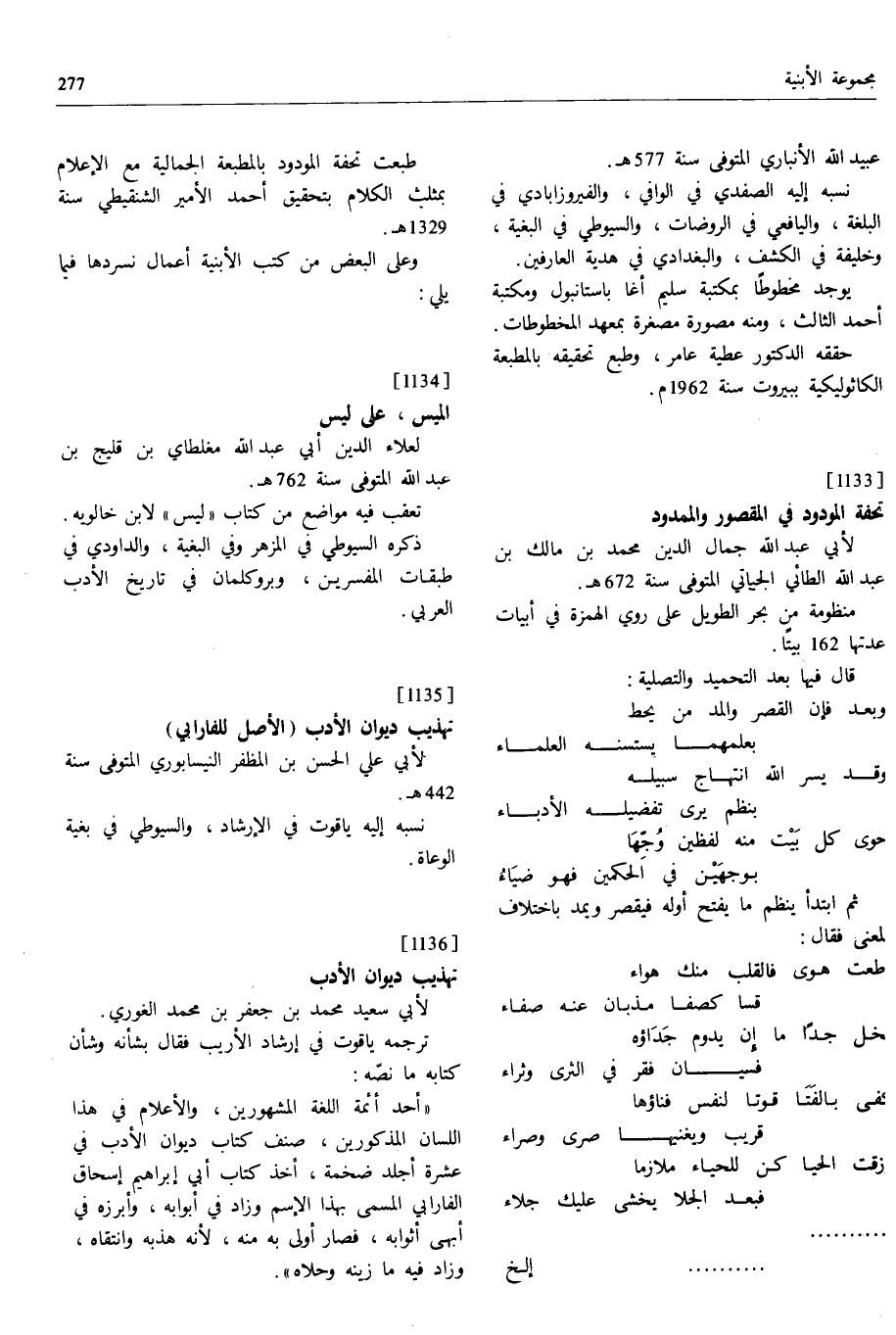 إلخ طبعت تحفة المودود بالمطبعة الجمالية مع الإعلام بمثلث الكلام بتحقيق أحمد الأمير الشنقيطي سنة 1329 ه.