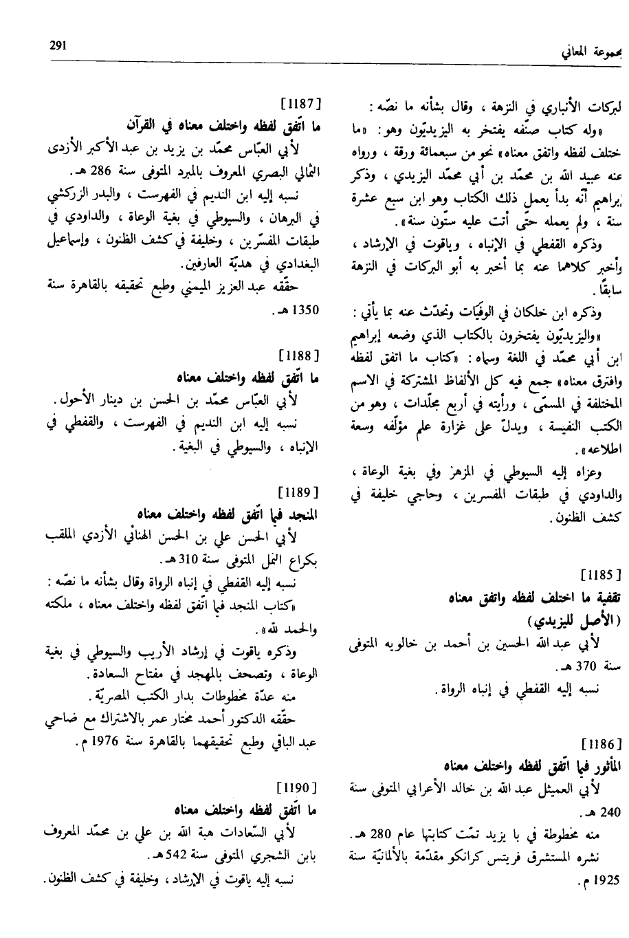 [1186] المأثور فيما اتّفق لفظه واختلف معناه