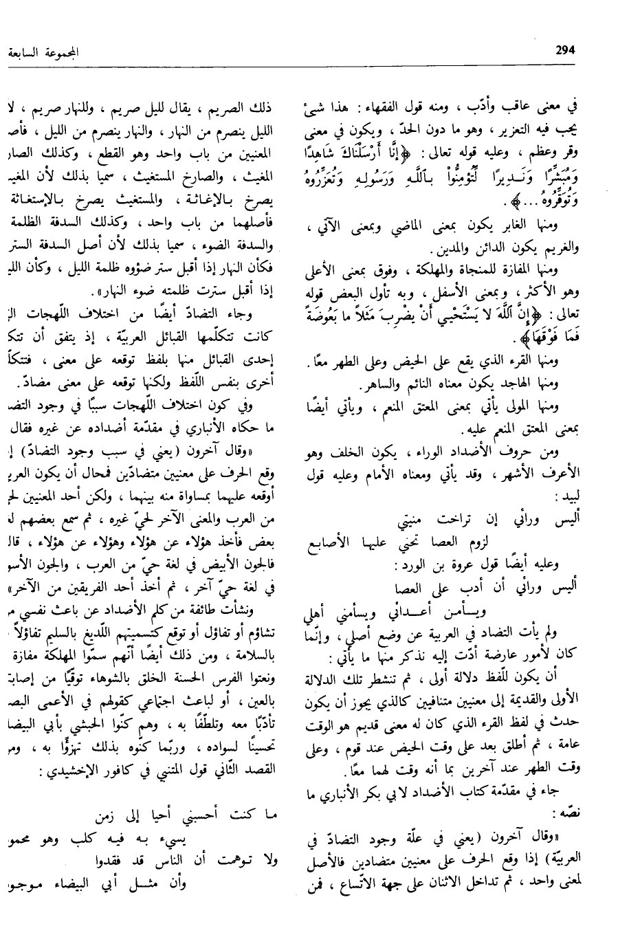 جاء في مقدّمة كتاب الأضداد لابي بكر الأنباري ما نصّه: