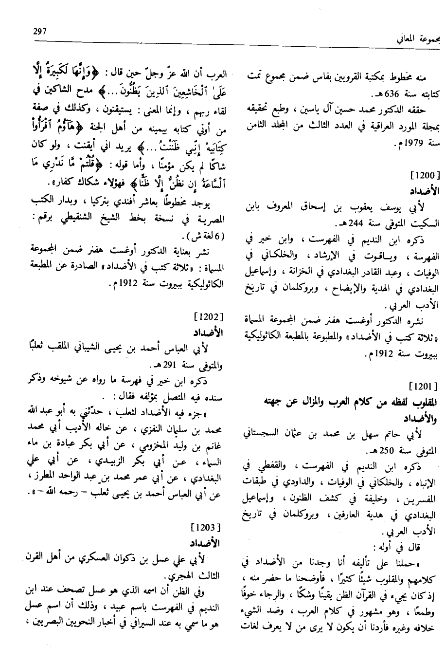 [1202] الأضداد لأبي العباس أحمد بن يحيى الشيباني الملقب ثعلبا والمتوفى سنة 291 ه.