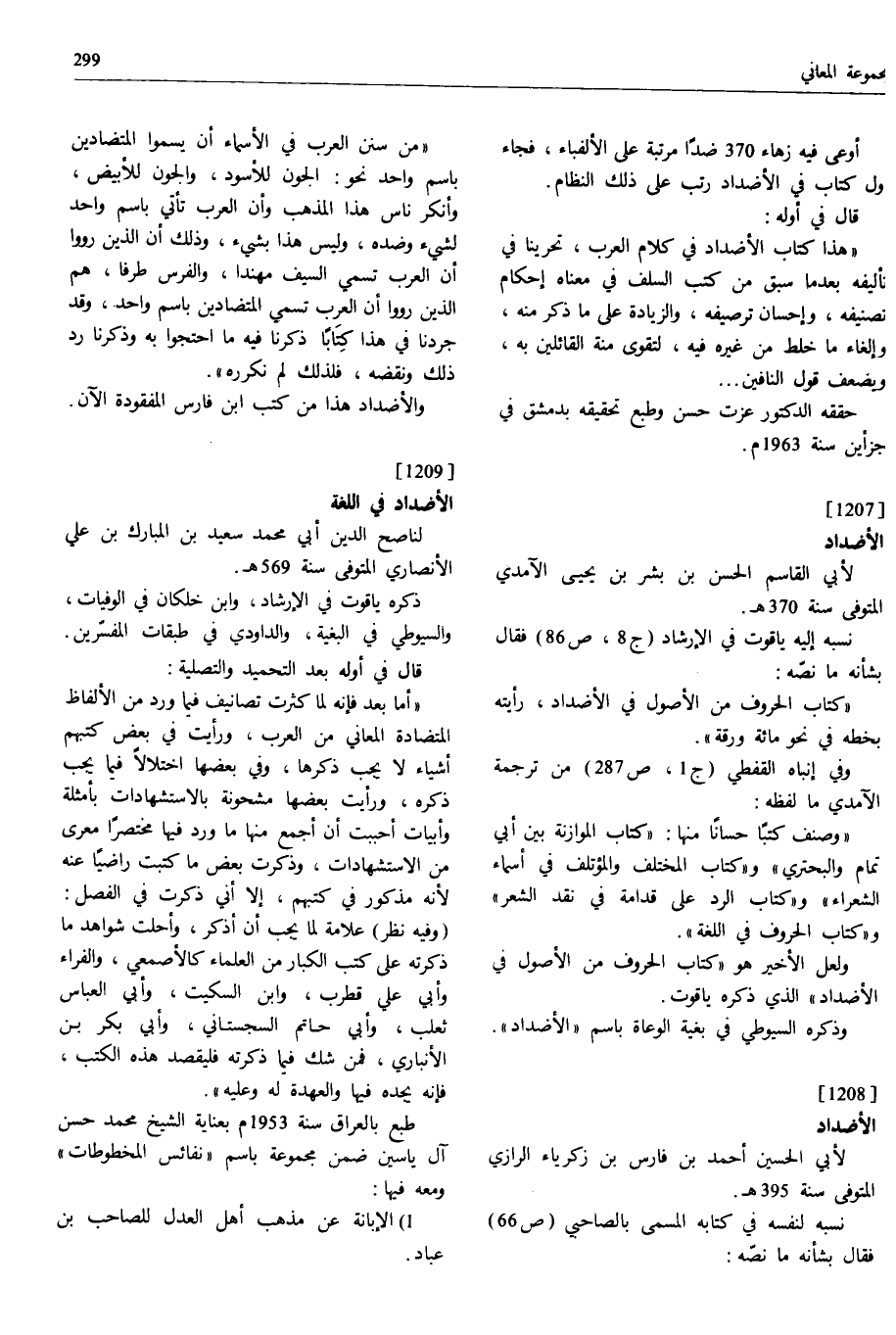 [1209] الأضداد في اللغة لناصح الدين أبي محمد سعيد بن المبارك بن علي الأنصاري المتوفى سنة 569 ه.