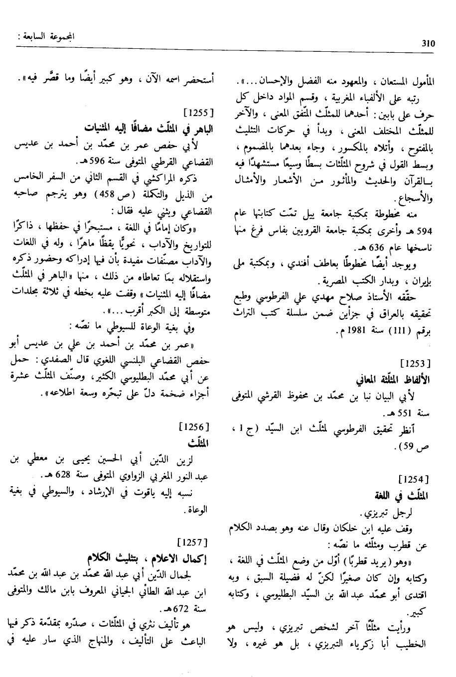 «انظر تحقيق الفرطوسي لمثلّث ابن السيّد (ج 1، ص 59).