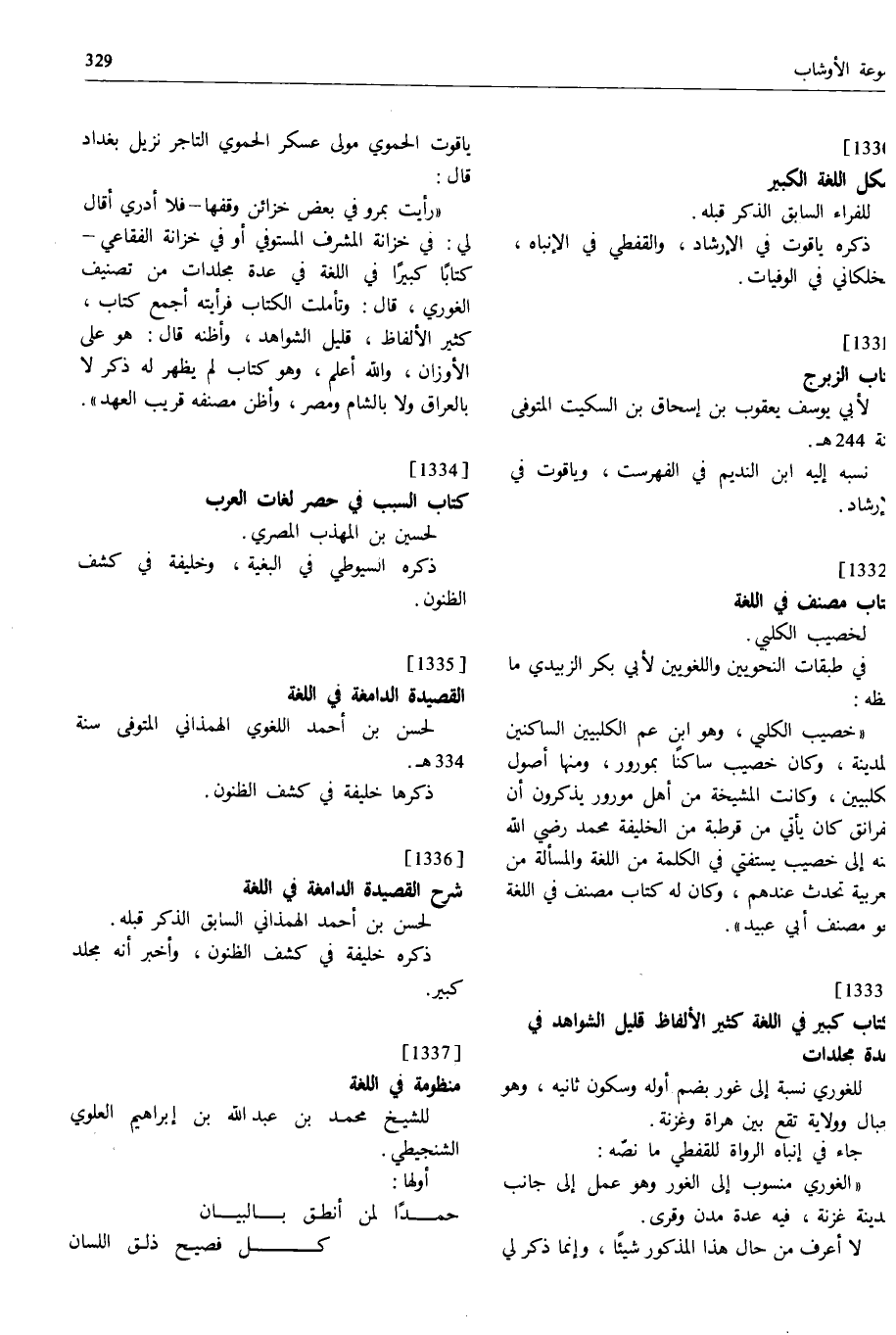[1333] كتاب كبير في اللغة كثير الألفاظ قليل الشواهد في عدة مجلدات