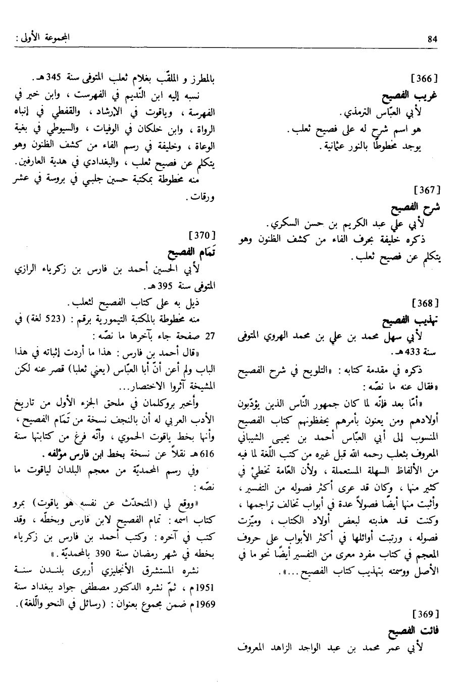 [366] غريب الفصيح لأبي العبّاس الترمذي.