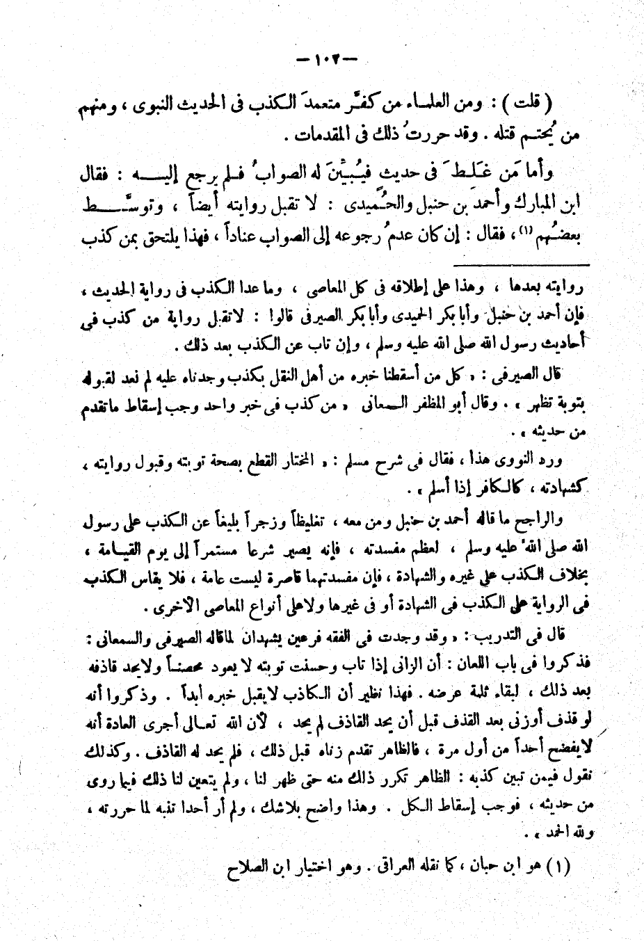 " قلت ": ومن العلماء من كفر متعمد الكذب في الحديث النبوي ومنه من يحتم قتله. وقد حررت ذلك في المقدمات.