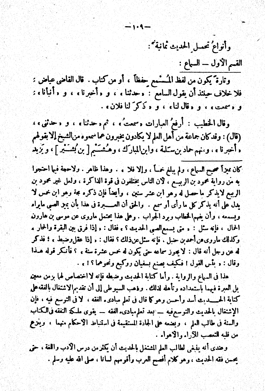 وقال الخطيب: أرفع العبارات " سمعت " ثم " حدثنا "، و " حدثني "، " قال ": وقد كان جماعة من أهل العلم لا يكادون يخبرون عما سمعوه من الشيخ إلا بقولهم " أخبرنا "، ومنهم حماد بن سلمة، وابن المبارك، وهشيم بن بشير، ويزيد
