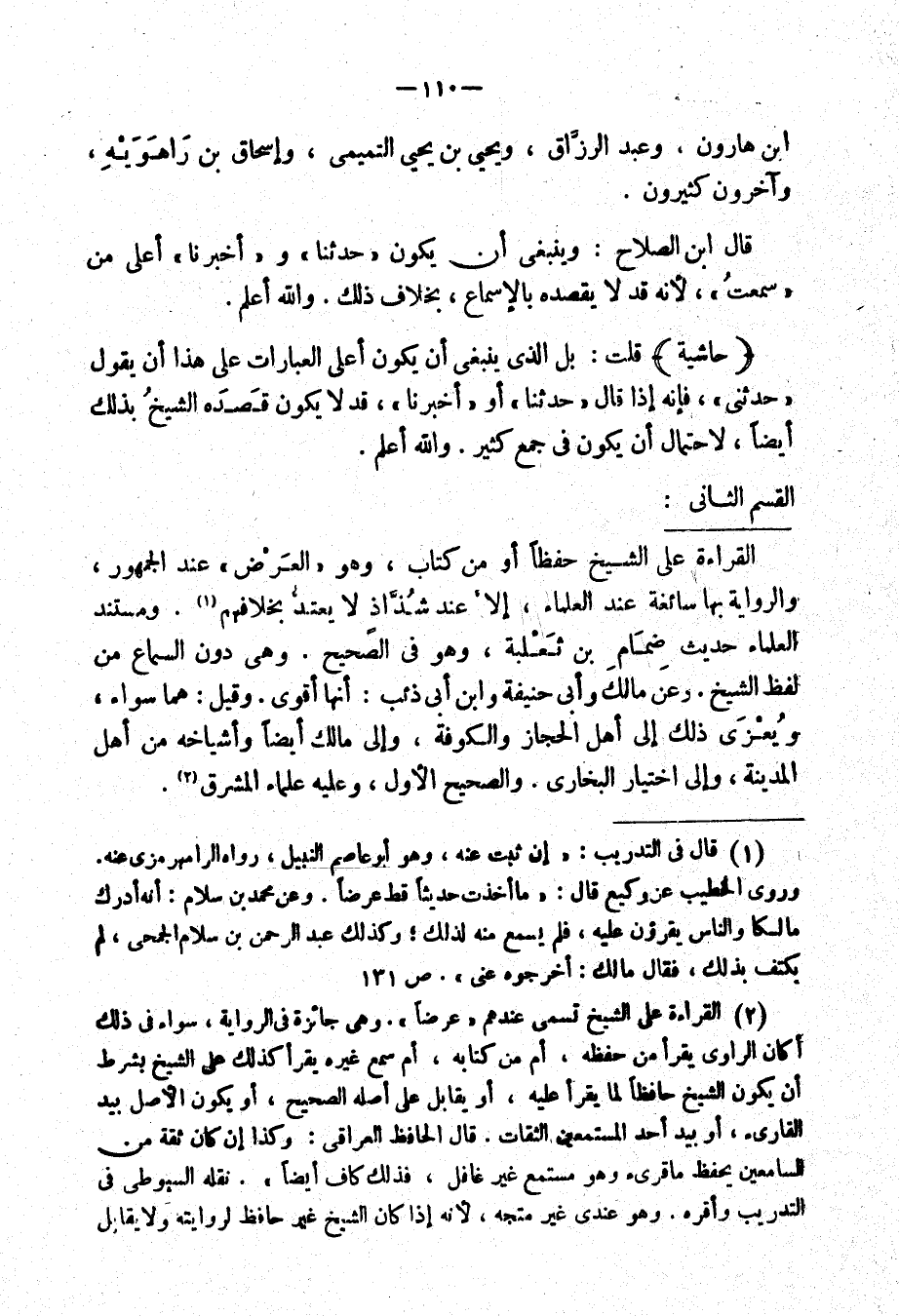 " حاشية " قلت: بل الذي ينبغي أن يكون أعلى العبارات على هذا أن يقول: " حدثني، فإنه إذا قال " حدثنا " أو " أخبرنا "، قد لا يكون قصده الشيخ بذلك أيضاً، لاحتمال أن يكون في جمع كثير. والله أعلم.
