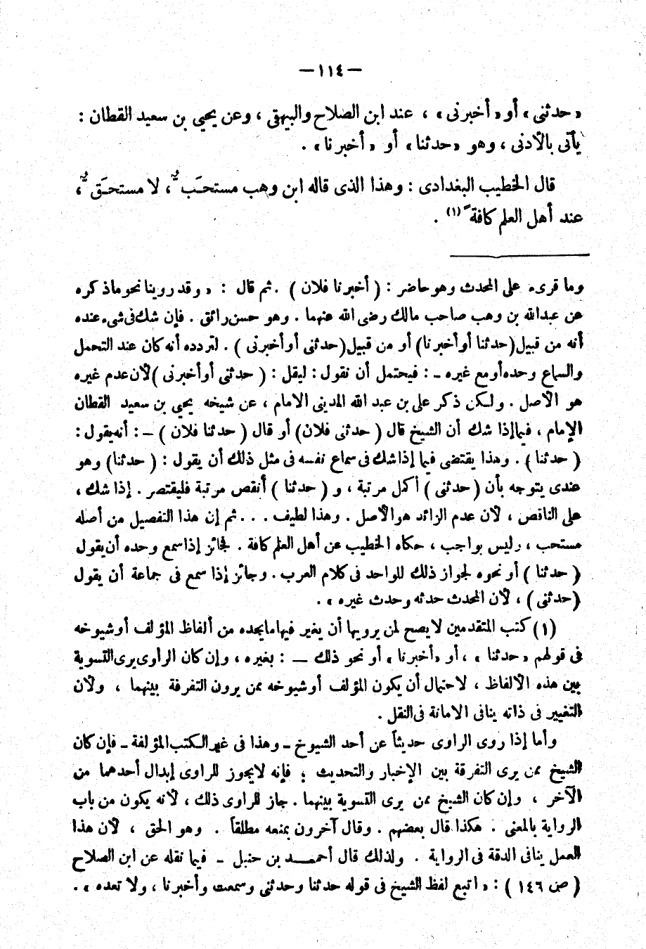 " حدثني " أو " أخبرني "، عند ابن الصلاح والبيهقي، وعن يحيى بن سعيد القطان: يأتي بالأدنى، وهو " حدثنا " أو " أخبرنا ".