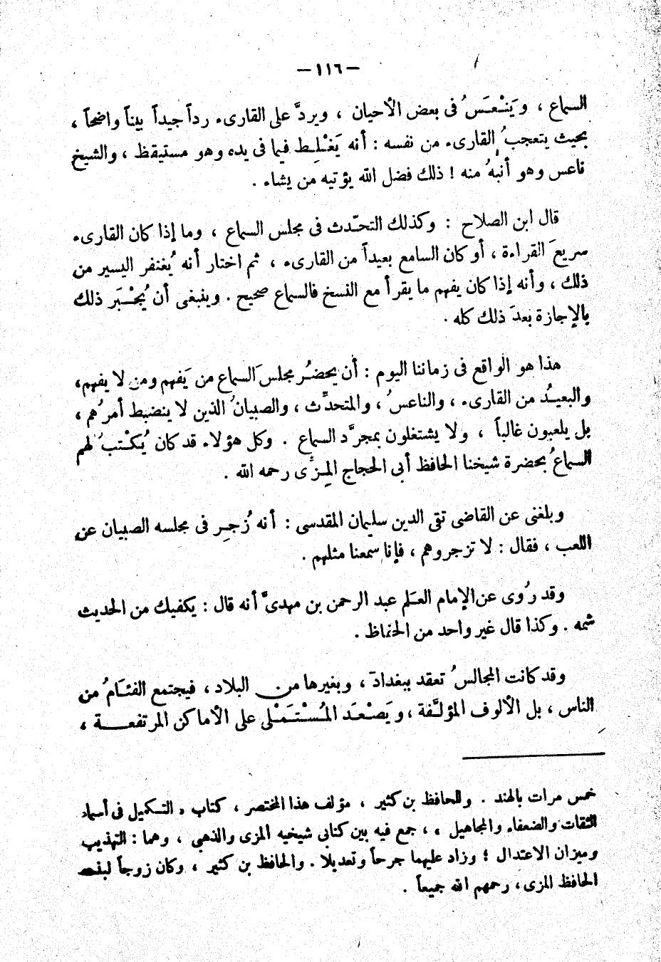 هذا هو الواقع في زماننا اليوم: أن يحضر مجلس السماع من يفهم ومن لا يفهم، والبعيد من القارئ، والناعس، والمتحدث، والصبيان الذين لا ينضبط أمرهم بل يلعبون غالباً، ولا يشتغلون بمجرد السماع. وكل هؤلاء قد كان يكتب لهم السماع بحضرة شيخنا الحافظ أبي الحجاج المزي رحمه الله.