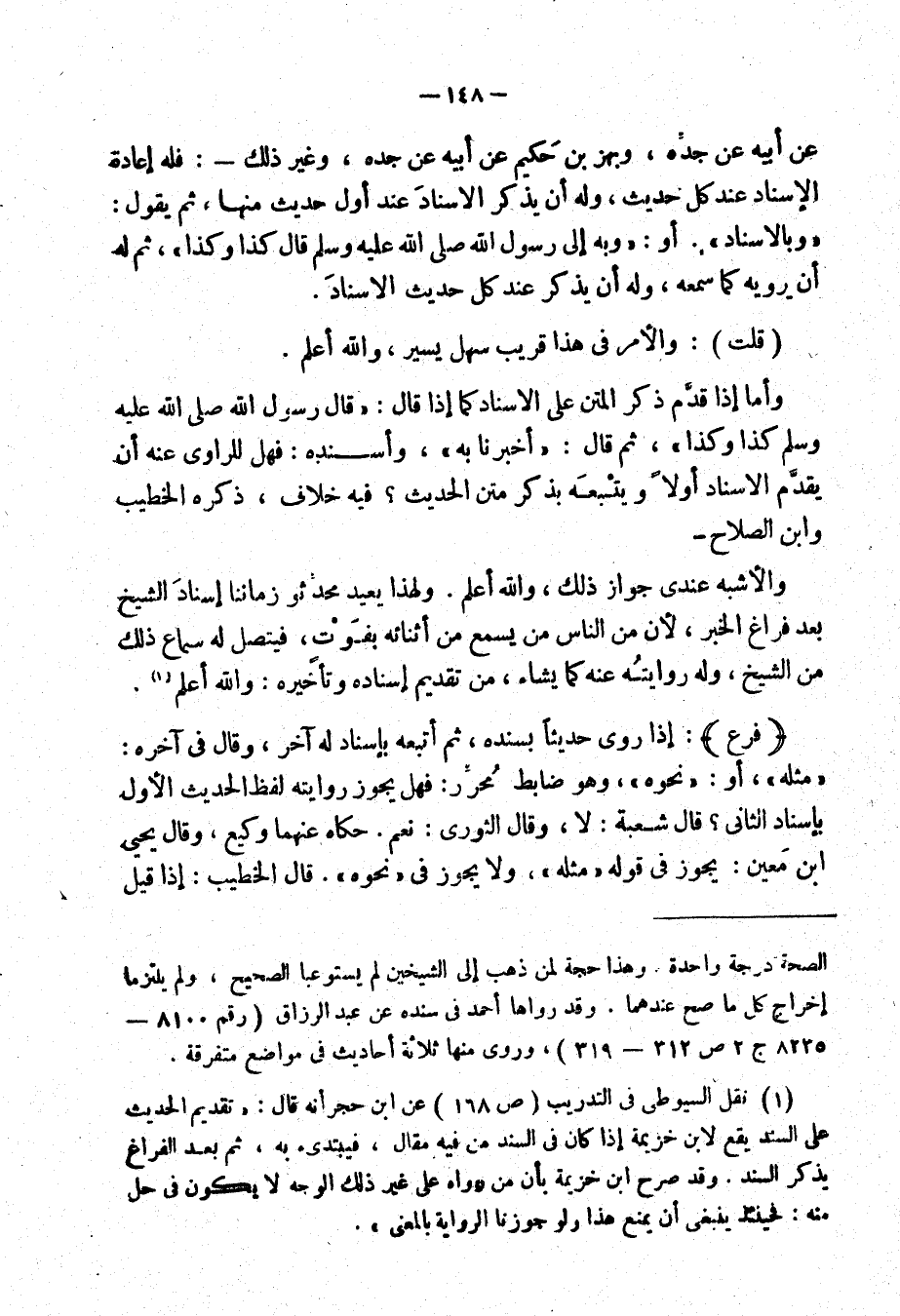 وأما إذا قدَّم ذكر المتن على الإسناد كما إذا قال: " قال رسول الله صلى الله عليه وسلم كذا وكذا " ثم قال: " أخبرنا به "، وأسنده: فهل للراوي عنه أن يقدم الإسناد أولاً ويتبعه بذكر متن الحديث؟ فيه خلاف، ذكره الخطيب ابن الصلاح.
