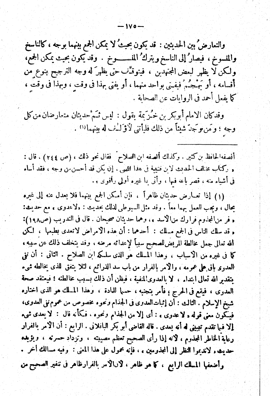 وقد كان الإمام أبو بكر بن خزيمة يقول: ليس ثم حديثان متعارضان من كل وجه؛ ومن وجد شيئاً من ذلك فليأتي لأؤلف له بينهما.