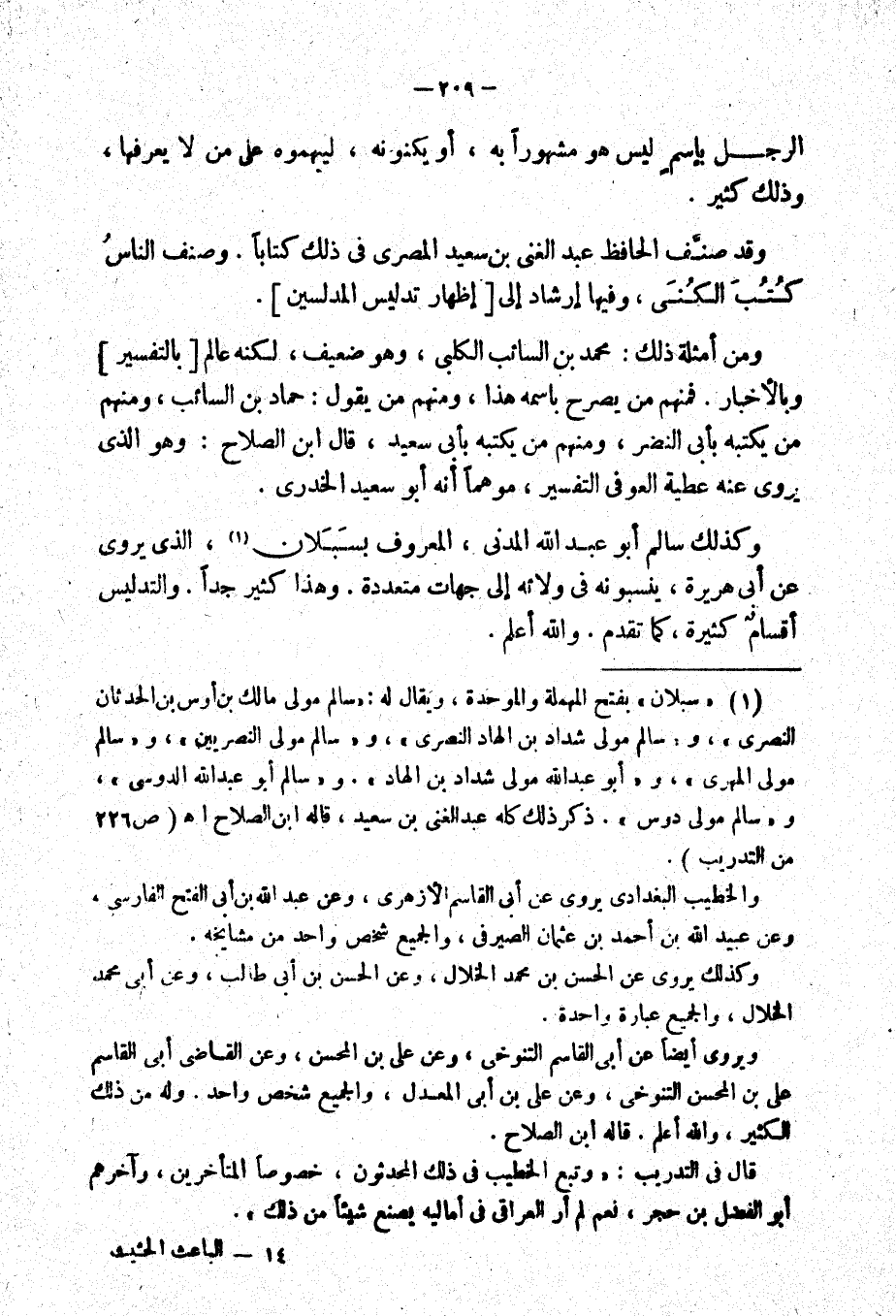 وكذلك سالم أبو عبد الله المدني، المعروف بسبلان، الذي يروي عن أبي هريرة، ينسبونه في ولاءه إلى جهات متعددة. وهذا كثير جداً، والتدليس أقسام كثيرة، كما تقدم. والله أعلم.