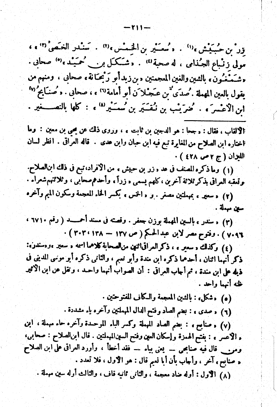 زِر بن حبيش ". " سُعير بن الخمس ". " سندر الخصي "، مولى زنباع الجذامي، له صحبة. " شكل بن حميد " صحابي. " شمْغون " بالشين والغين المعجمتين " بن زيد أبور ريحانة " صحابي، ومنهم من يقول بالعين المهملة. " صُدي بن عجلان أبو أمامة " صحابي. " صُنا يج بن الأعسر ". " ضريب بن نقير بن سمير ": كلها بالتصغير.