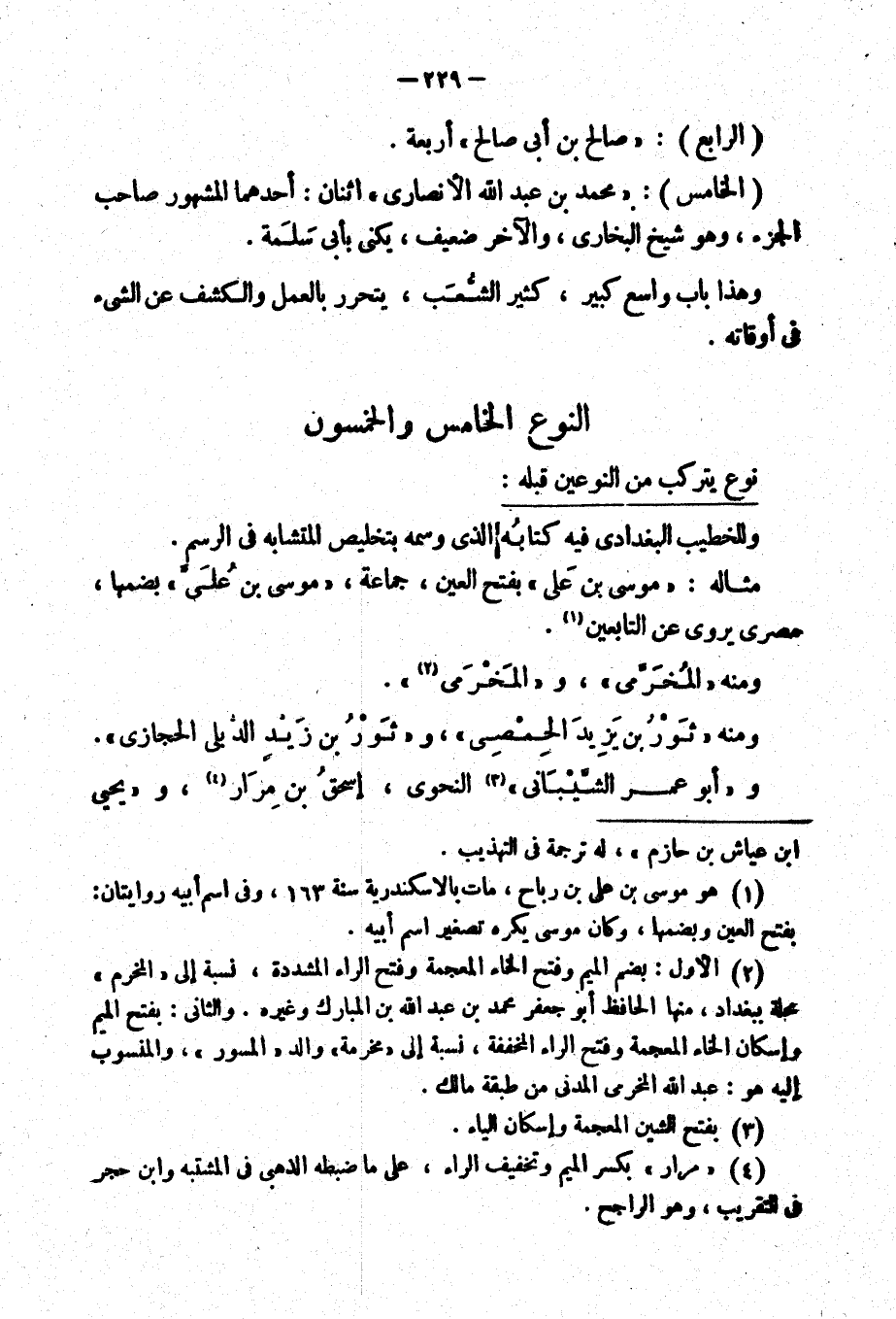 مثاله: " موسى بن علي " بفتح العين، حماعة، " موسى بن علي " بضمها، مصري يروي عن التابعين.