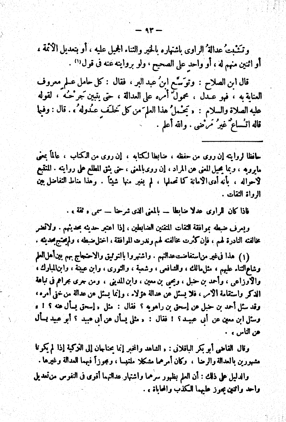 وتثبت عدالة الراوي باشتهاره بالخير والثناء الجميل عليه، أو بتعديل الأئمة، أو اثنين منهم له، أو واحد على الصحيح، ولو بروايته عنه في قول.