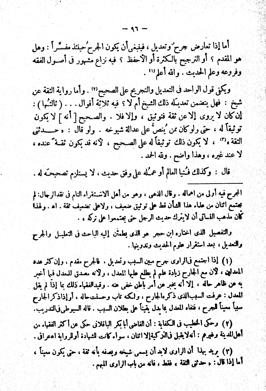 أما إذا تعارض جرح وتعديل، فينبغي أن يكون الجرح حينئذ مفسراً. وهل هو المقدم؟ أو الترجيح بالكثرة أو الأحفظ؟ فيه نزاع مشهور في أصول الفقه وفروعه وعلم الحديث. والله أعلم.