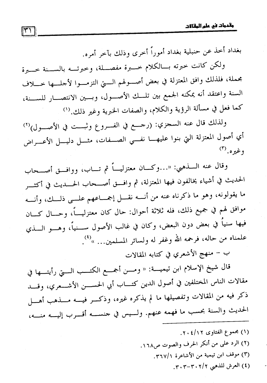 ب - منهج الأشعري في كتابه المقالات
