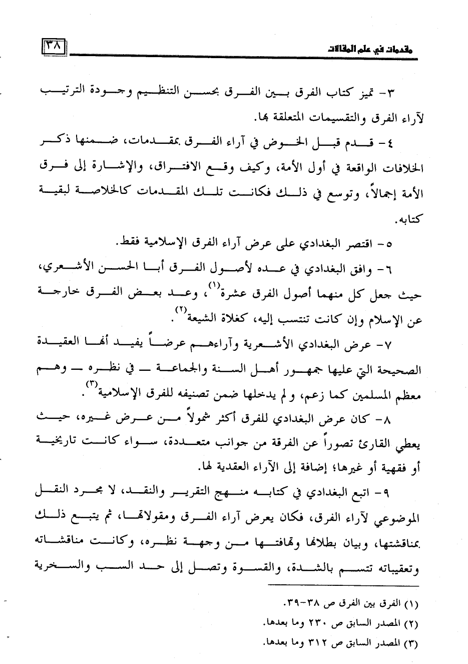 3-تميز كتاب الفرق بين الفرق بحسن التنظيم وجودة الترتيب لآراء الفرق والتقسيمات المتعلقة بها.