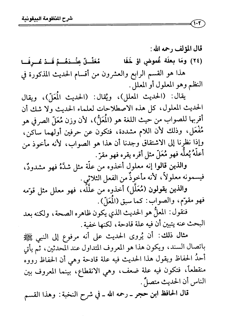 هذا هو القسم الرابع والعشرون من أقسام الحديث المذكورة في النظم وهو المعلول أو المعلل.