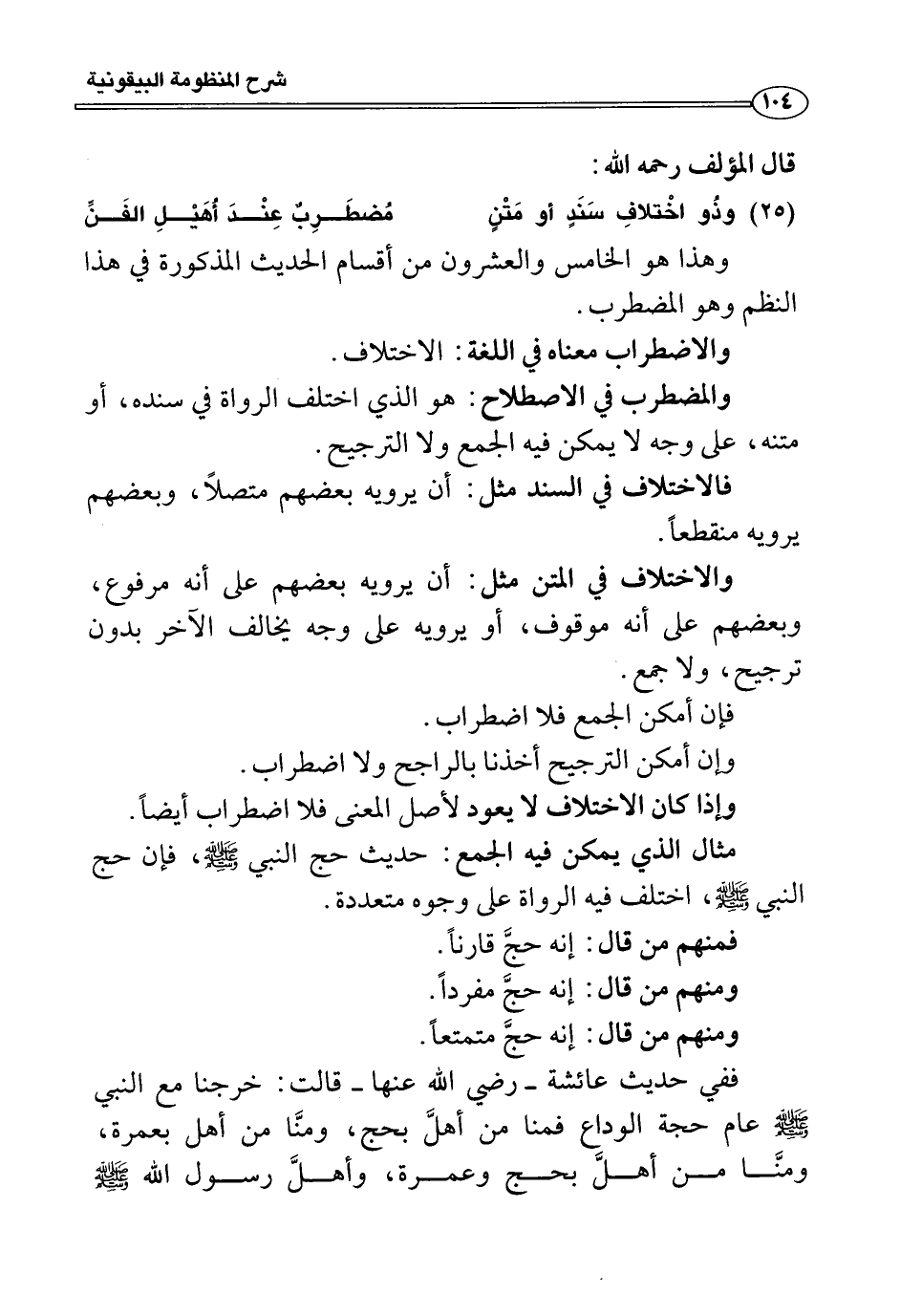 25 - وذُو اخْتلافِ سَنَدٍ أو مَتْنٍ ... مُضطَرِبٌ عِنْدَ أُهَيْلِ الفَنِّ