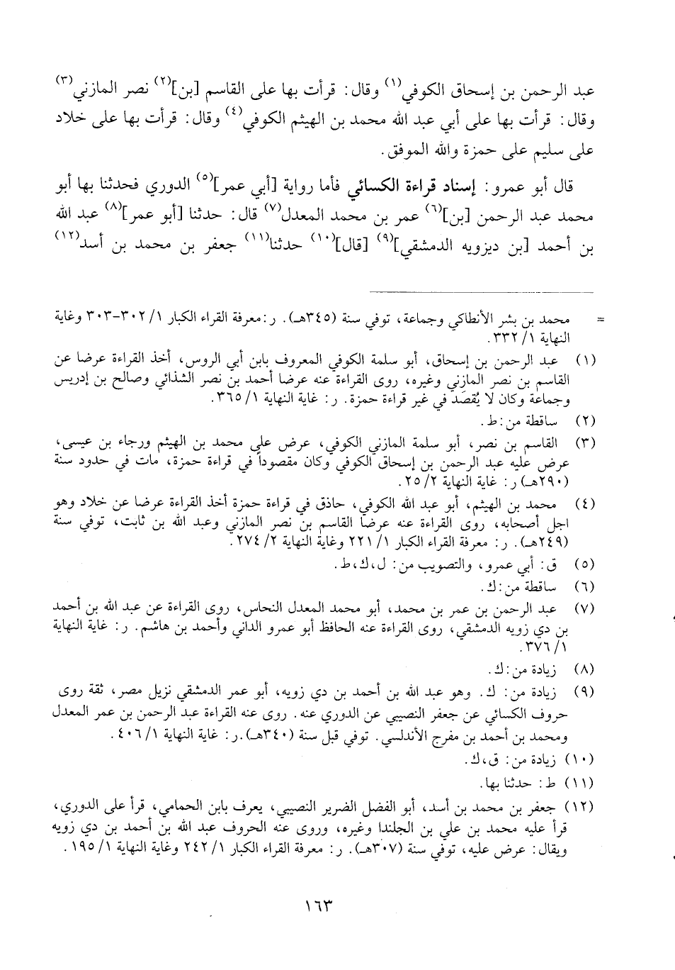 [وقرأت بهَا الْقُرْآن كُله على الإِمَام / أبي مُحَمَّد عبد الرَّحْمَن بن أَحْمد بن عَليّ [الْبَغْدَادِيّ] وَأَخْبرنِي أَنه قَرَأَ بهَا الْقُرْآن كُله على الإِمَام التقي مُحَمَّد بن أَحْمد الْمصْرِيّ وَقَرَأَ بهَا على إِبْرَاهِيم بن أَحْمد الإسكندري وَقَرَأَ [بهَا] على زيد بن الْحسن وَقَرَأَ بهَا على عبد الله بن عَليّ الْبَغْدَادِيّ وَقَرَأَ بهَا على الْأُسْتَاذ أبي الْعِزّ القلانسي وَقَرَأَ بهَا على [أبي عَليّ] الْحسن بن الْقَاسِم الوَاسِطِيّ وَقَرَأَ بهَا على الحمامي وَقَرَأَ بهَا على النخاس وَقَرَأَ بهَا [على التمار وَقَرَأَ] على رويس وَقَرَأَ [بهَا] على يَعْقُوب.