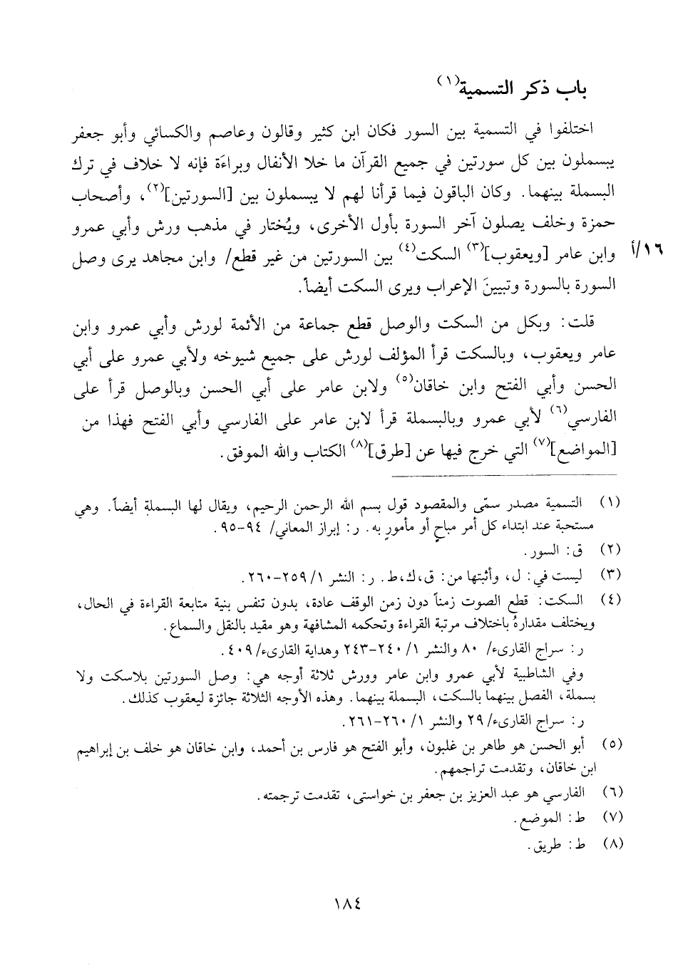 سَبِيلا) لَا غير. روى ذَلِك مَنْصُوصا ابْن اليزيدي عَن أَبِيه عَنهُ. وَأما الضَّاد فأدغمها فِي الشين فِي قَوْله تَعَالَى: (لبَعض شانهم) . لَا غير. نَص على ذَلِك السُّوسِي عَن اليزيدي عَنهُ. وَأما السِّين فأدغمها فِي الزَّاي فِي قَوْله تَعَالَى: (وَإِذا النُّفُوس زوجت) لَا غير، وَفِي الشين بِخِلَاف عَنهُ فِي قَوْله تَعَالَى: (الرَّأْس شيبا) وبالإدغام قرأته.