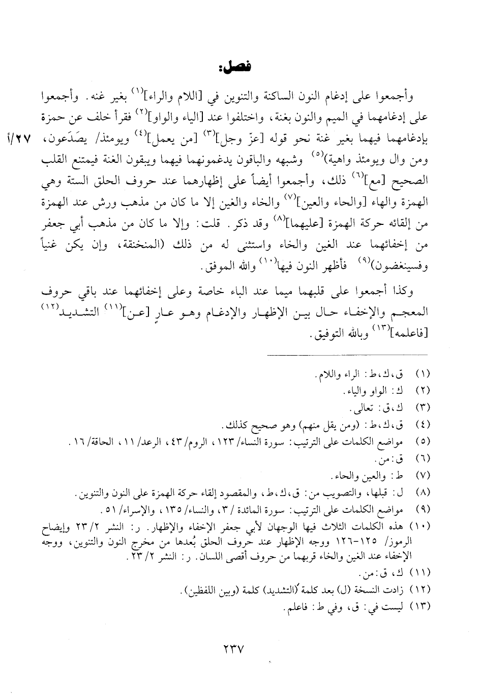 وأمال أَبُو عَمْرو ورويس وَالْكسَائِيّ أَيْضا فِي رِوَايَة الدوري فَتْحة الْكَاف من (الْكَافرين وكافرين) إِذا كَانَ بعد الرَّاء يَاء حَيْثُ وَقع، قلت: [تَابعهمْ] روح فِي النَّمْل [على إمالة] (إِنَّهَا كَانَت من قوم كَافِرين) وَالله الْمُوفق. وَقَرَأَ ورش ذَلِك كُله بَين بَين وَقَرَأَ الْبَاقُونَ بإخلاص الْفَتْح. وأقرأني الْفَارِسِي عَن قِرَاءَته على أبي طَاهِر فِي قِرَاءَة أبي عَمْرو بإمالة فَتْحة النُّون من (النَّاس) فِي مَوضِع الْجَرّ حَيْثُ وَقع. قلت: يَعْنِي من رِوَايَة الدوري عَنهُ لِأَنَّهُ تقدم فِي الْأَسَانِيد أَنه قَرَأَ / بِرِوَايَة الدوري عَن أبي عَمْرو على الْفَارِسِي عَن أبي طَاهِر وَهَذَا من الدقائق فاعلمه وَالله الْمُوفق. وَهِي رِوَايَة أبي عبد الرَّحْمَن، وَأبي حمدون وَابْن سَعْدَان عَن اليزيدي عَنهُ وأقرأني غَيره بِالْفَتْح وَهِي رِوَايَة أَحْمد ابْن جُبَير عَن اليزيدي وَبِه كَانَ يَأْخُذ ابْن مُجَاهِد. وَبِذَلِك قَرَأَ الْبَاقُونَ.