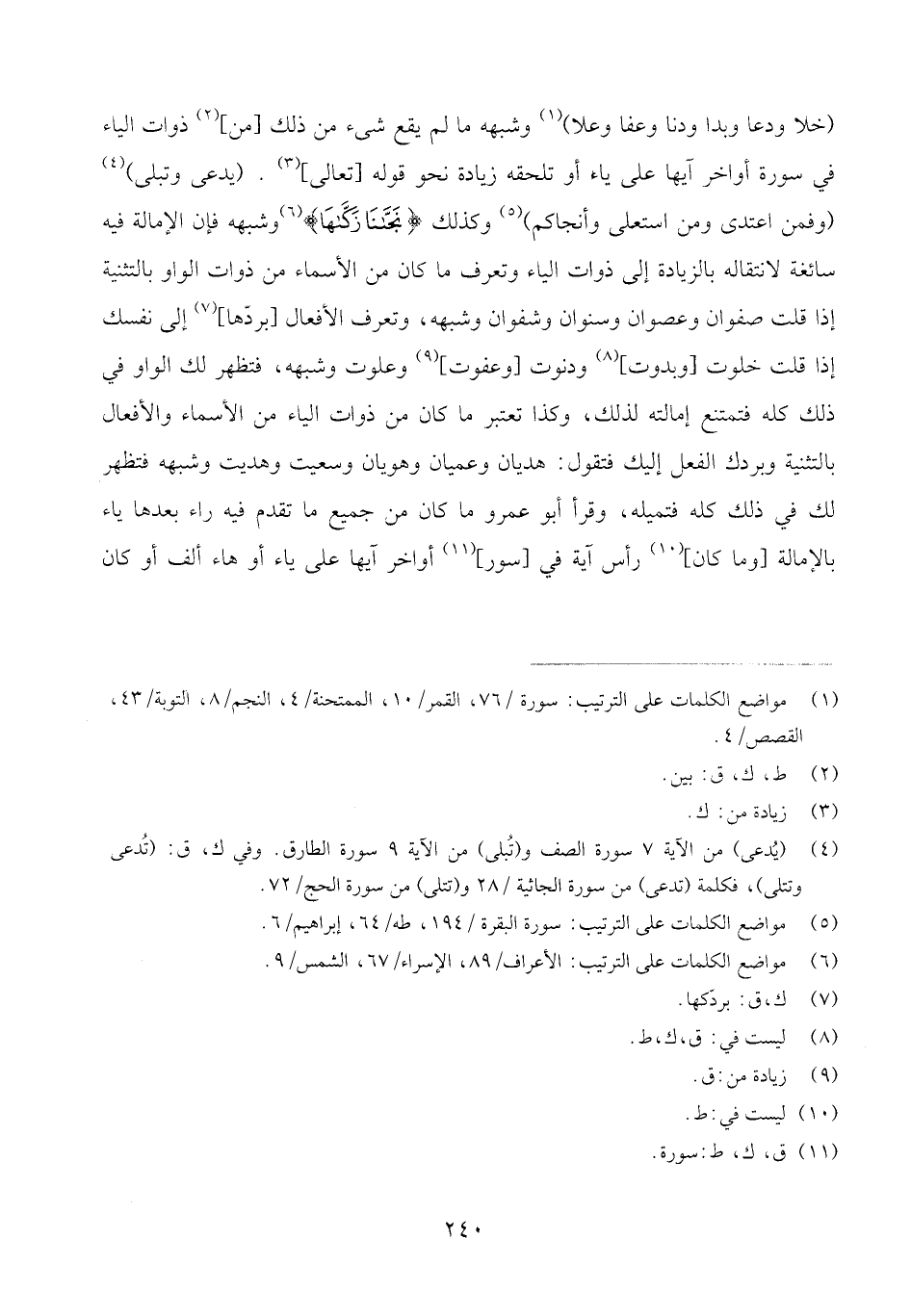 اعْلَم أَن الْكسَائي كَانَ يقف على هَاء التَّأْنِيث وَمَا ضارعها فِي اللَّفْظ بالإمالة نَحْو قَوْله تَعَالَى [جنَّة] (وربوة ونعمة وَالْقِيَامَة ولعبرة وَالْآخِرَة [وخاطئة وَوَجهه وَرَحْمَة وخطبة وَالْمَلَائِكَة ومشركة والأيكة وَفَاكِهَة وآلهة] وهمزة ولمزة وبصيرة وَشبهه إِلَّا أَن يَقع قبل الْهَاء [أحد عشرَة أحرف] الطَّاء والظاء وَالصَّاد وَالضَّاد وَالْخَاء والغين وَالْقَاف وَالْألف والحاء وَالْعين نَحْو قَوْله تَعَالَى (- بَسطه [وفطرة] وموعظة وخصاصه