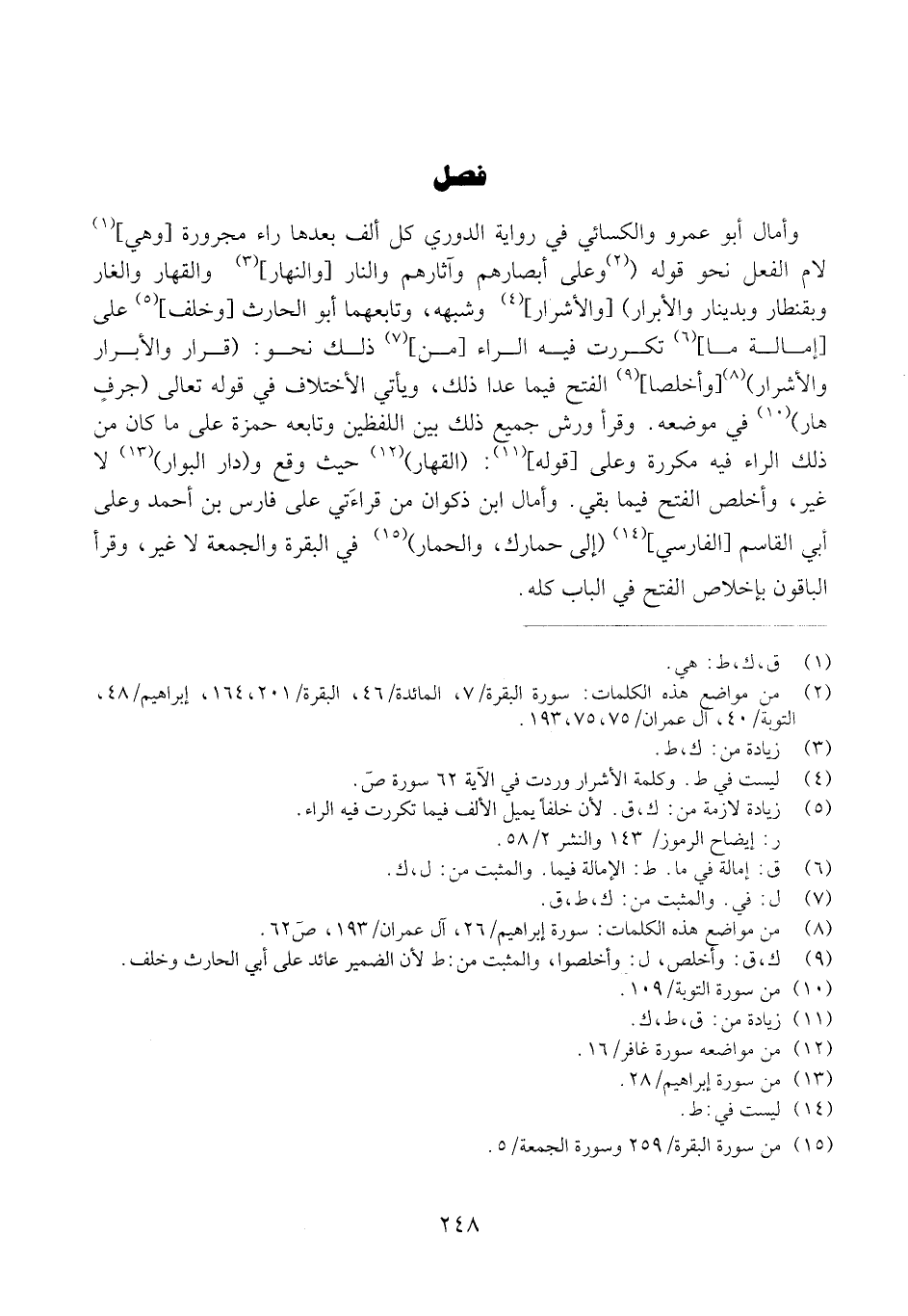 وَقَرَأَ الْبَاقُونَ بِفَتْح هَذِه اللَّام من غير إشباع حَيْثُ وَقعت وَأَجْمعُوا على تَغْلِيظ اللَّام من اسْم اللَّهِ عز وَجل مَعَ الفتحة والضمة نَحْو قَوْله عز وَجل: (قَالَ اللَّهِ ورسل اللَّهِ وَقَالُوا اللَّهُمَّ) وَشبهه وعَلى ترقيقها مَعَ الكسرة فِي الْوَصْل نَحْو قَوْله تَعَالَى: (بِسم اللَّهِ وَالْحَمْد لله وَقل اللَّهُمَّ) وَشبهه وَكَذَلِكَ سَائِر اللامات لَا خلاف فِي ترقيقهن سَوَاء تحركن أَو سكن وَبِاللَّهِ التَّوْفِيق.