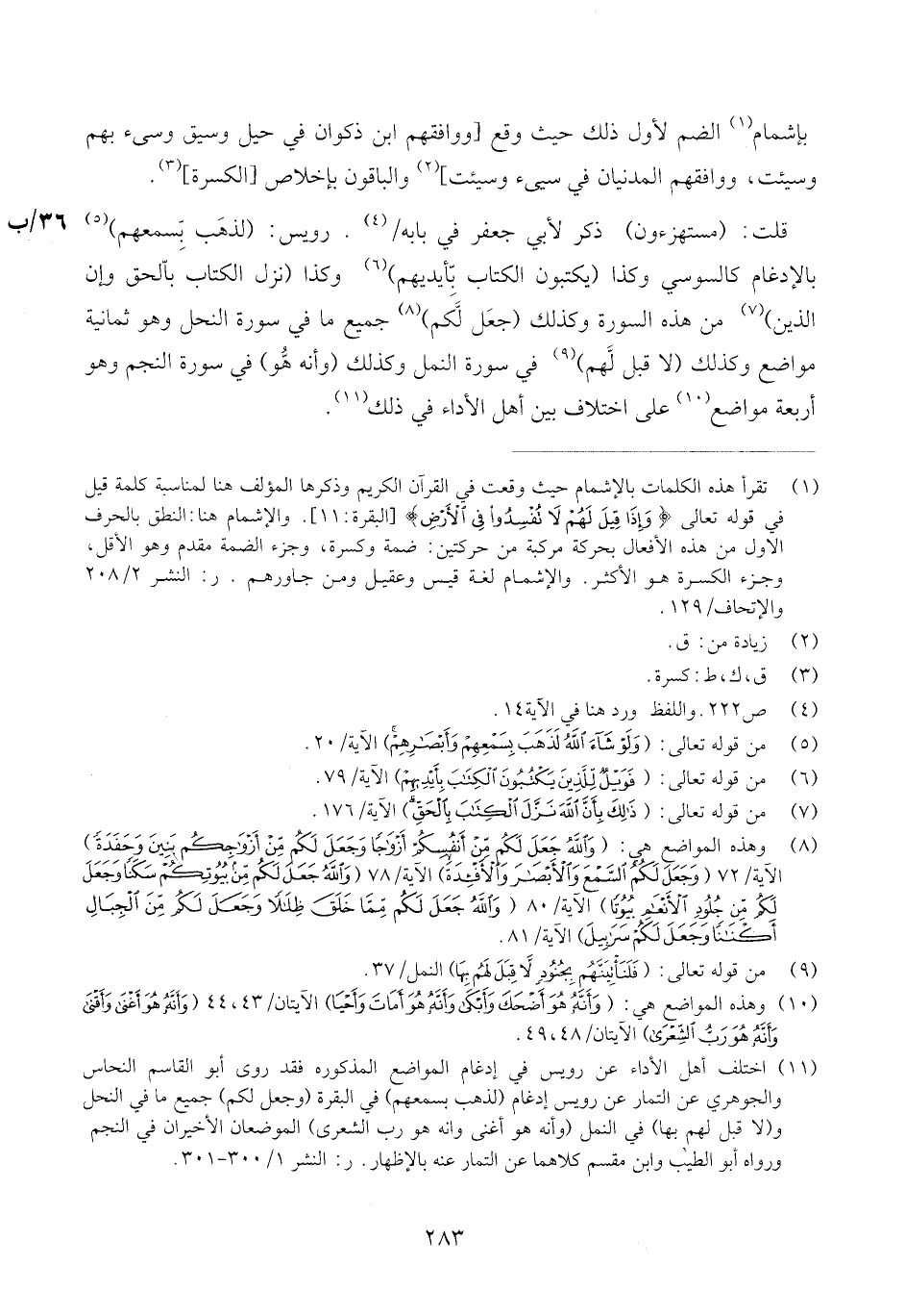 هِشَام: (إبراهام) بِالْألف جَمِيع مَا فِي هَذِه السُّورَة وَفِي النِّسَاء ثَلَاثَة أحرف وَهِي الْأَخِيرَة وَفِي الْأَنْعَام الْحَرْف الْأَخير وَفِي التَّوْبَة الحرفان الأخيران وَفِي إِبْرَاهِيم حرف وَفِي النَّحْل حرفان وَفِي مَرْيَم ثَلَاثَة أحرف وَفِي العنكبوت الْحَرْف الْأَخير وَفِي عسق حرف وَفِي الذاريات حرف وَفِي والنجم حرف وَفِي الْحَدِيد حرف وَفِي الممتحنة الْحَرْف الأول فَذَلِك ثَلَاثَة وَثَلَاثُونَ حرفا وقرأت لِابْنِ ذكْوَان فِي الْبَقَرَة خَاصَّة بِالْوَجْهَيْنِ وَالْبَاقُونَ بِالْيَاءِ فِي الْجَمِيع.