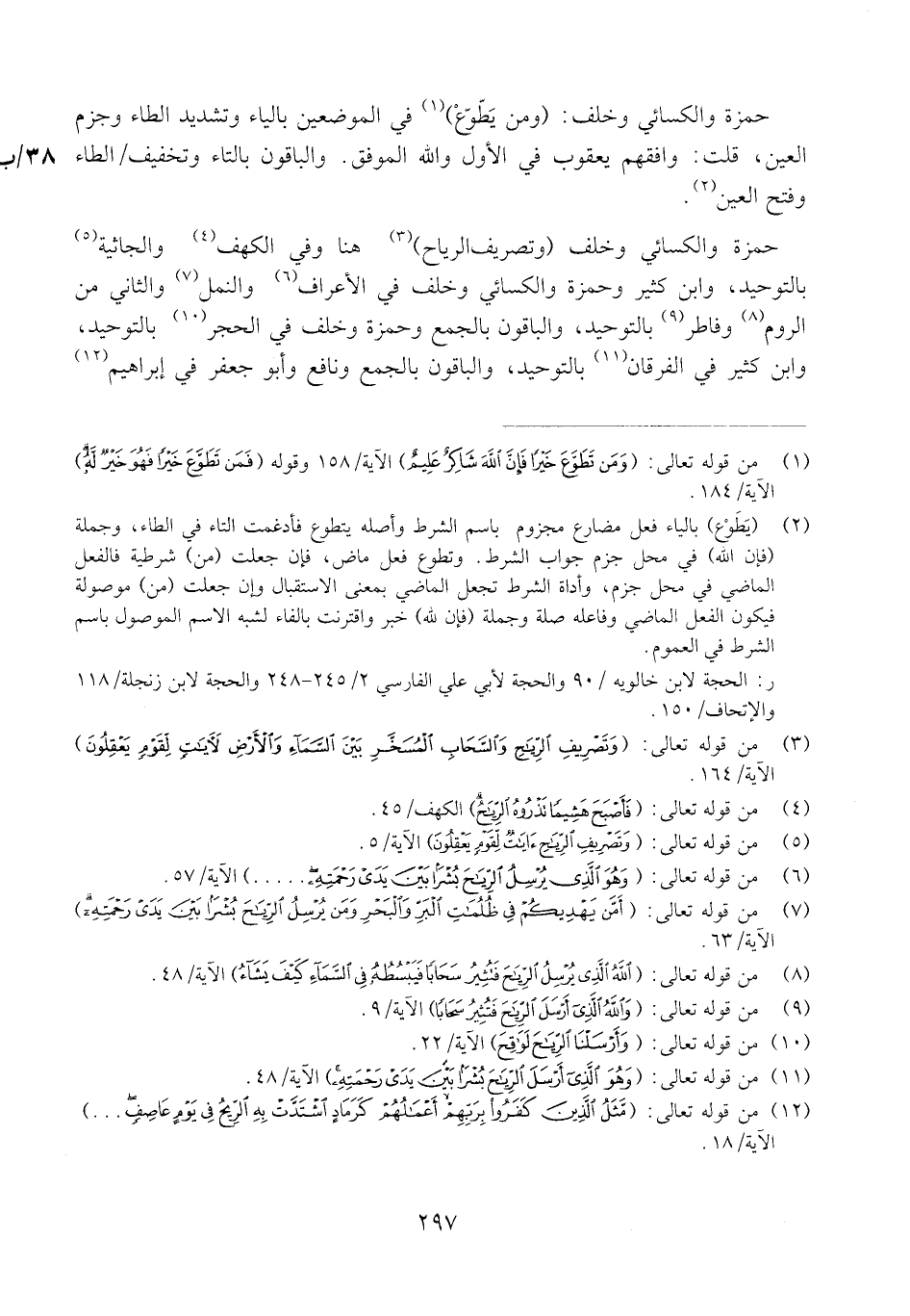 حَمْزَة وَالْكسَائِيّ وَيَعْقُوب وَخلف (لم يتسن) بِحَذْف الْهَاء فِي الْوَصْل خَاصَّة وَالْبَاقُونَ بإثباتها فِي الْحَالين. الْكُوفِيُّونَ وَابْن عَامر: ننشزها بالزاي وَالْبَاقُونَ بالراء. حَمْزَة وَالْكسَائِيّ (قَالَ اعْلَم إِن اللَّهِ) بوصل الْألف وَجزم الْمِيم ويبتدئان بِكَسْر الْألف على الْأَمر، وَالْبَاقُونَ بِقطع الْألف فِي الْحَالين وَرفع الْمِيم على الْإِخْبَار.