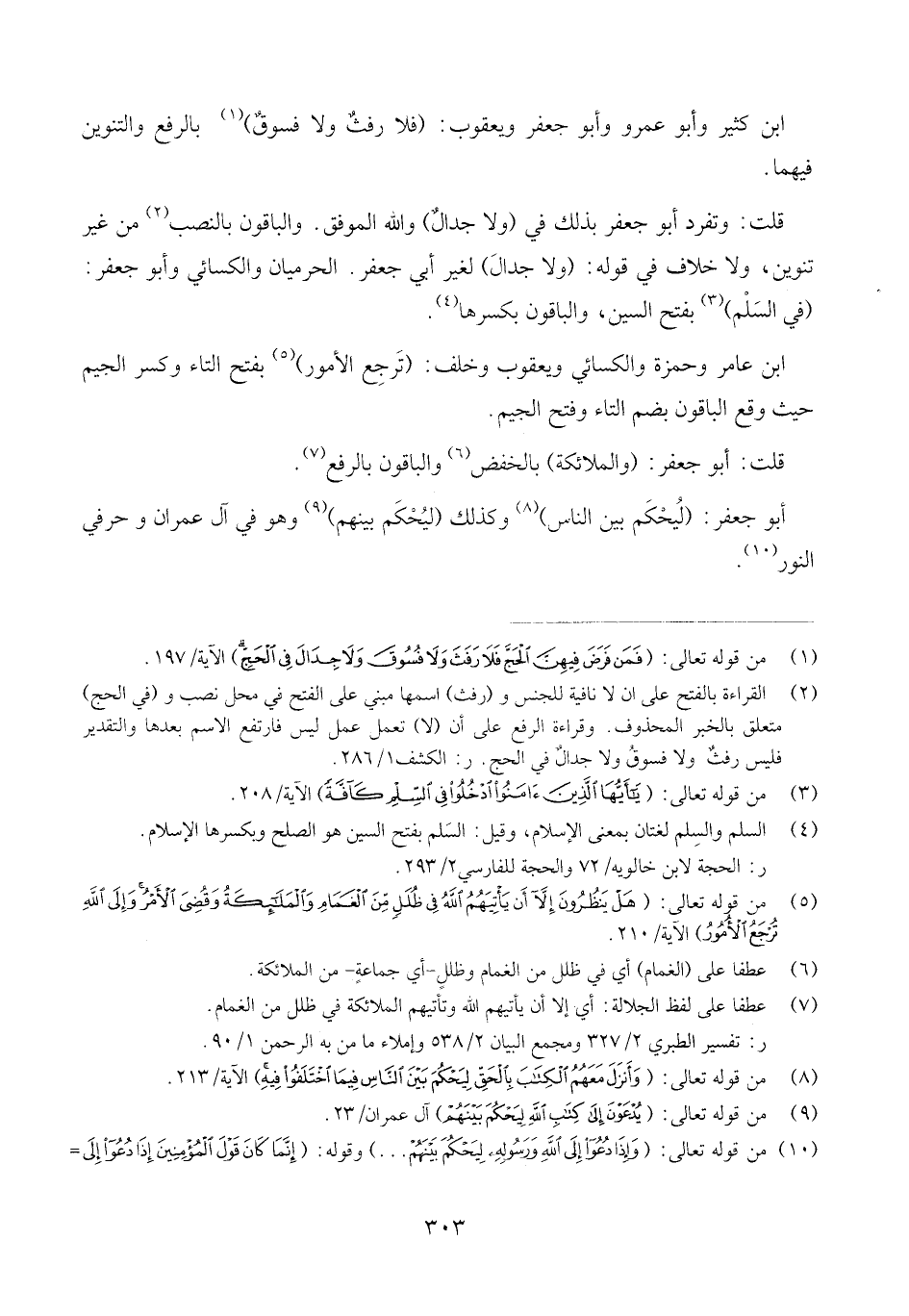 أَبُو بكر وَحَمْزَة (فآذنوا) بِالْمدِّ وَكسر الذَّال وَالْبَاقُونَ بِالْقصرِ وَفتح الذَّال. نَافِع (إِلَى ميسرَة) بِضَم السِّين / وَالْبَاقُونَ بِفَتْحِهَا. عَاصِم: (وَأَن تصدقوا) بتَخْفِيف الصَّاد وَالْبَاقُونَ [بتشديدها] .