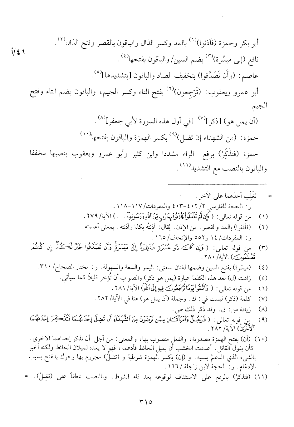 نَافِع وَابْن عَامر وَأَبُو جَعْفَر: (سارعوا) بِغَيْر وَاو قبل السِّين، وَالْبَاقُونَ بِالْوَاو أَبُو بكر وَحَمْزَة وَالْكسَائِيّ وَخلف: (قرح) فِي الْمَوْضِعَيْنِ (والقرح) بِضَم الْقَاف فِي الثَّلَاثَة وَالْبَاقُونَ بِفَتْحِهَا فِيهَا.