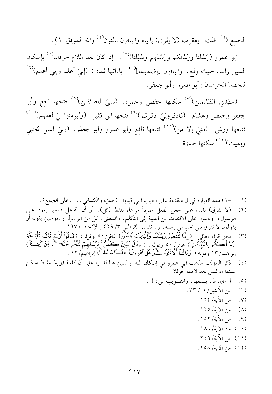 (ابْن عَامر: (الَّذين قتلوا) هُنَا وَفِي الْحَج (ثمَّ قتلوا) بتَشْديد التَّاء فيهمَا وَالْبَاقُونَ بتخفيفها - 9) ، هِشَام من قراءتي على أبي الْفَتْح (وَلَا يَحسبن الَّذين قتلوا) بِالْيَاءِ وَالْبَاقُونَ بِالتَّاءِ.