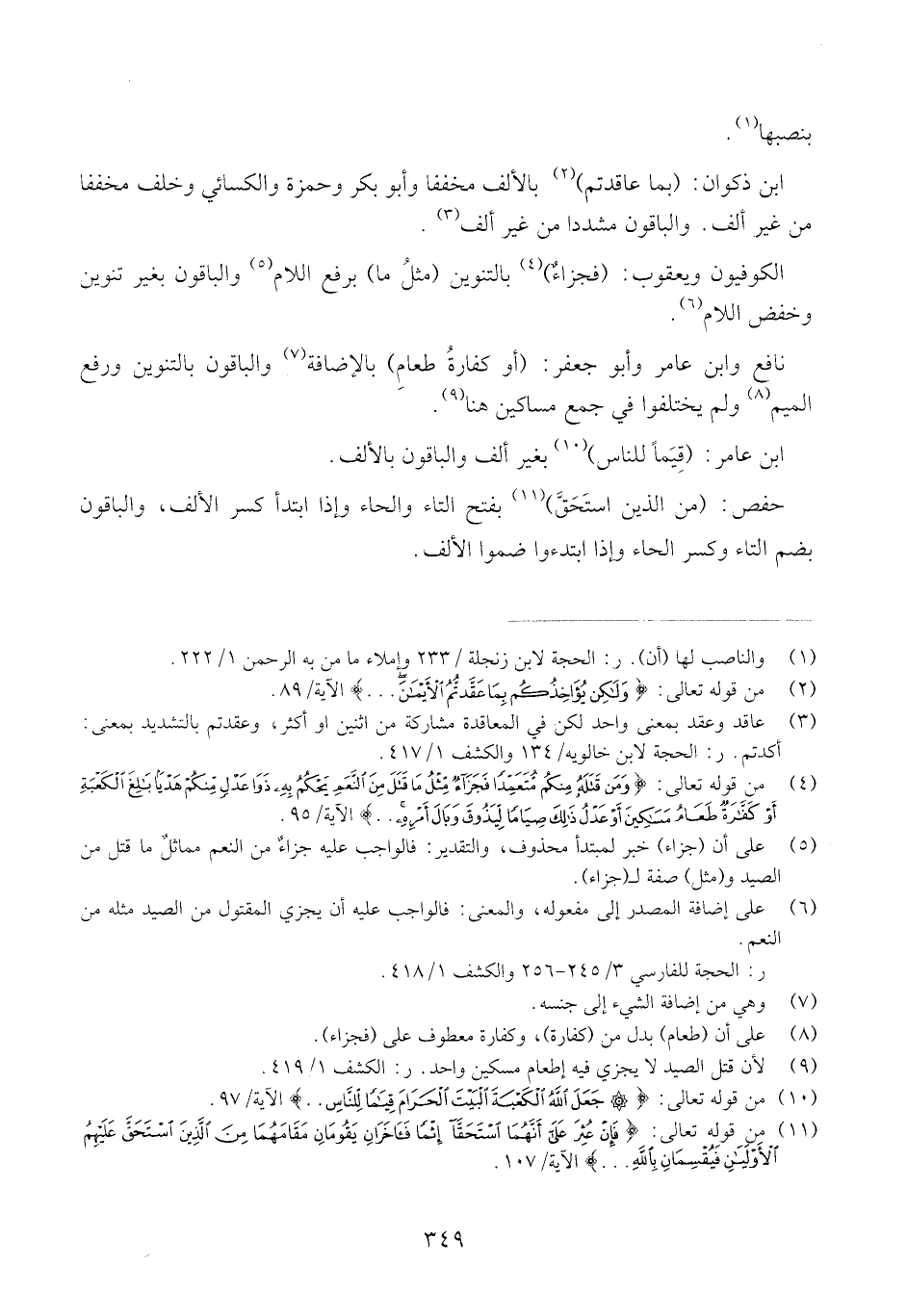 نَافِع وَأَبُو جَعْفَر (وخرقوا لَهُ) بتَشْديد الرَّاء وَالْبَاقُونَ بتخفيفها. ابْن كثير وَأَبُو عَمْرو: (دارست) بِالْألف وَفتح التَّاء وَابْن عَامر وَيَعْقُوب بِغَيْر ألف وَفتح السِّين وَإِسْكَان التَّاء وَالْبَاقُونَ بِغَيْر ألف وَإِسْكَان / السِّين وَفتح التَّاء. قلت: يَعْقُوب (عدوا) بِضَم الْعين وَالدَّال وَتَشْديد الْوَاو، وَالْبَاقُونَ بِفَتْح الْعين وَإِسْكَان الدَّال وَالتَّخْفِيف وَالله الْمُوفق. ابْن كثير وَأَبُو عَمْرو وَيَعْقُوب وَخلف وَأَبُو بكر بِخِلَاف عَنهُ (إِنَّهَا إِذا جَاءَت) بِكَسْر الْهمزَة، وَالْبَاقُونَ بِفَتْحِهَا.