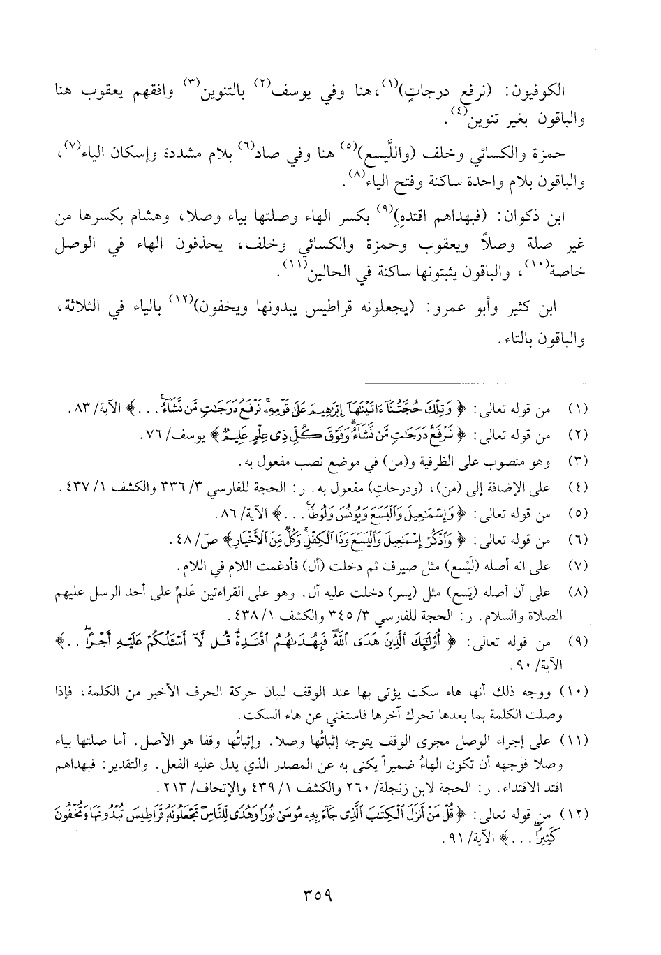 نَافِع: (خَالِصَة) بِالرَّفْع وَالْبَاقُونَ بِالنّصب. أَبُو بكر: (وَلَكِن لَا يعلمُونَ) بِالْيَاءِ وَالْبَاقُونَ بِالتَّاءِ. أَبُو عَمْرو: (لَا تفتح) بِالتَّاءِ خَفِيفا وَحَمْزَة وَالْكسَائِيّ وَخلف بِالْيَاءِ خَفِيفا وَالْبَاقُونَ بِالتَّاءِ شَدِيدا.