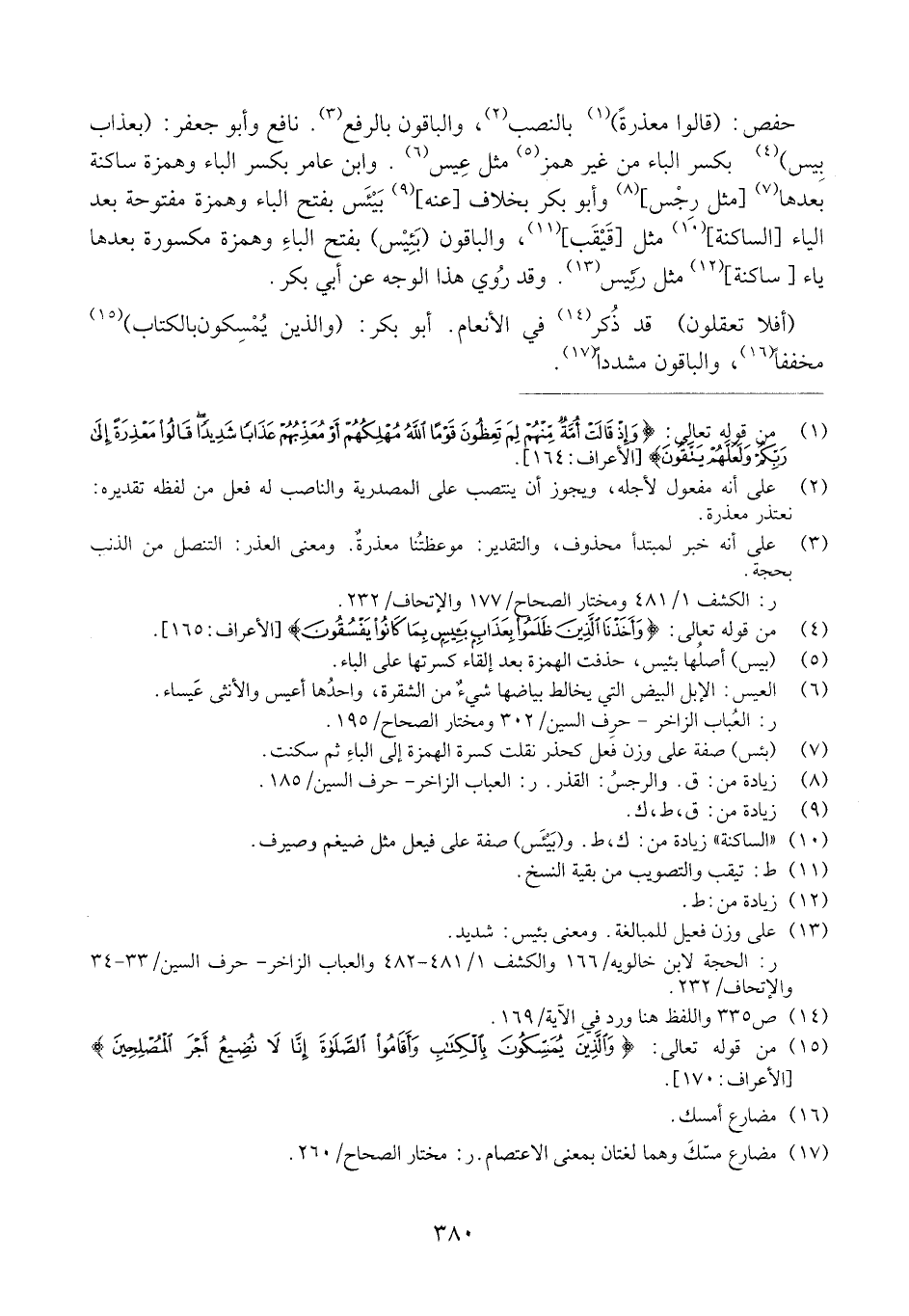 قلت: يَعْقُوب (المعذرون) يإسكان الْعين وَتَخْفِيف الذَّال، وَالْبَاقُونَ بِالْفَتْح وَالتَّشْدِيد وَالله الْمُوفق.