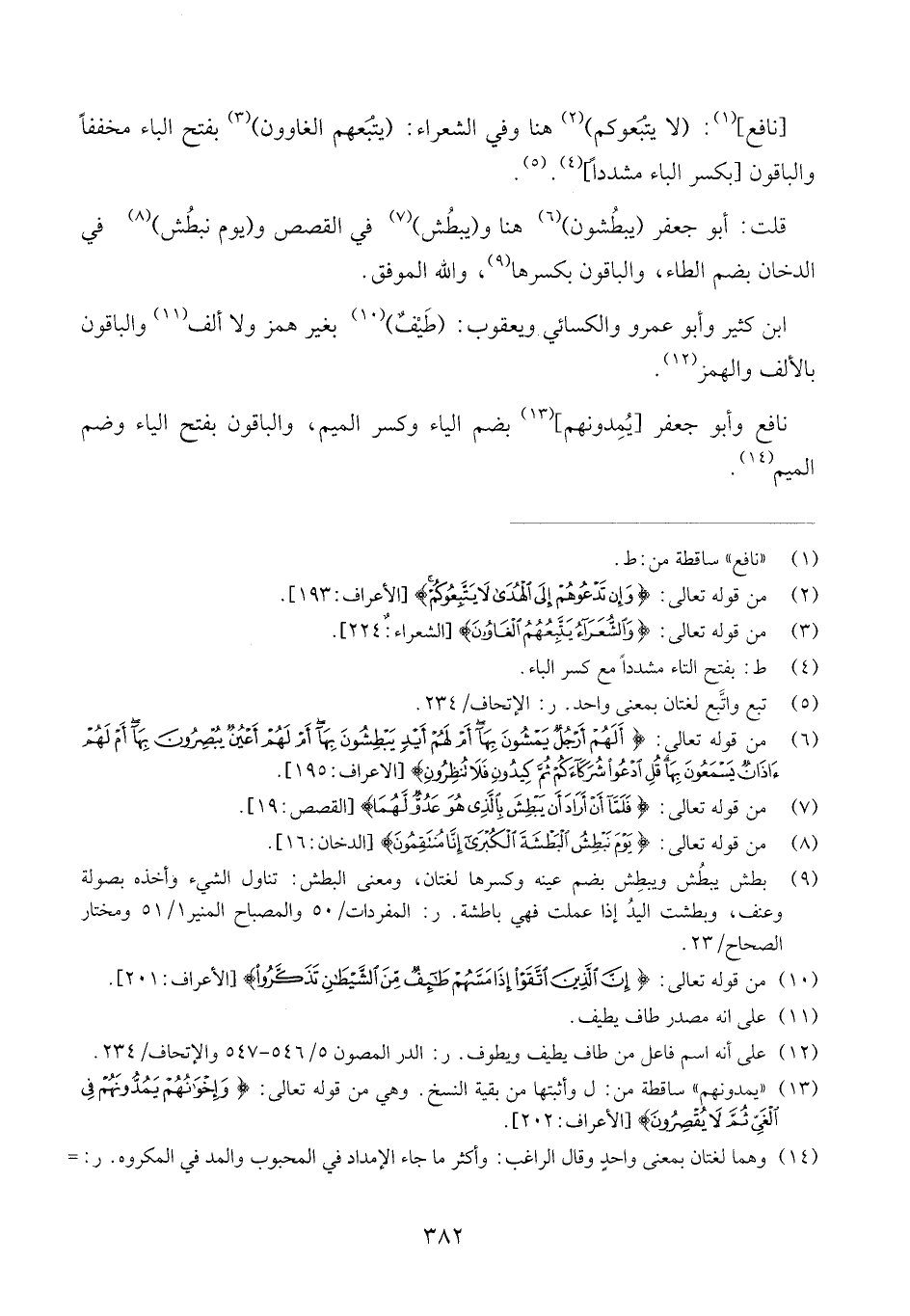 نَافِع وَابْن عَامر: (أَفَمَن أسس بُنْيَانه، خير أم من أسس بُنْيَانه) بِضَم الْهمزَة وَكسر السِّين الأولى وَرفع النُّون فيهمَا، وَالْبَاقُونَ بِفَتْح الْهمزَة وَالسِّين وَنصب النُّون من (بُنْيَانه) .