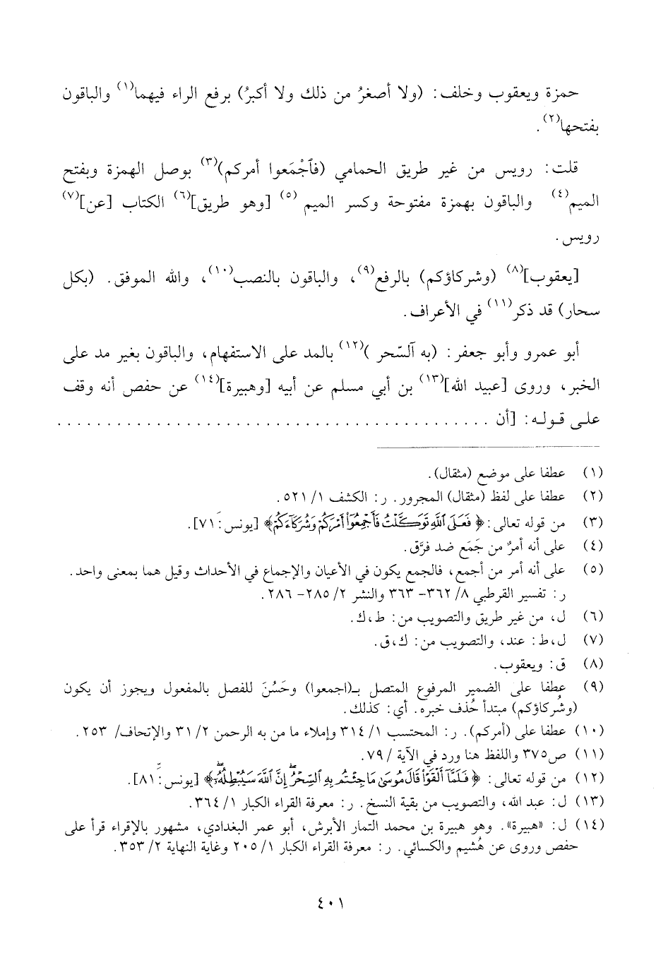 ورش وَأَبُو جَعْفَر وَخلف وَالْكسَائِيّ وَأَبُو عَمْرو إِذا خفف الْهَمْز قرؤوا الذِّئْب بِغَيْر همز وَالْبَاقُونَ بِالْهَمْز فِي الْحَالين وَحَمْزَة / على أَصله إِذا وقف.