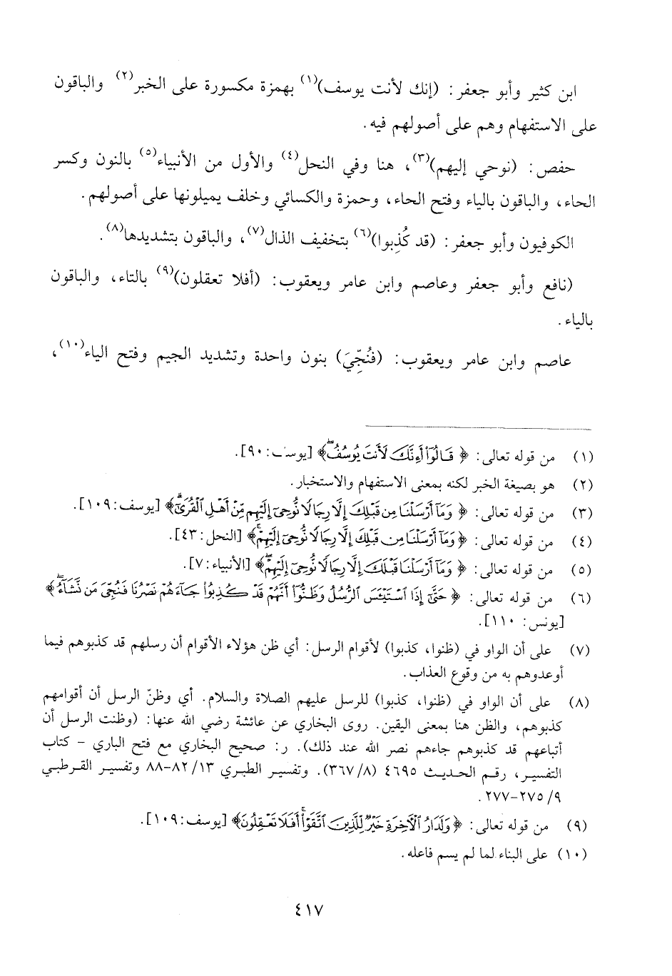 حَمْزَة وَالْكسَائِيّ وَيَعْقُوب وَخلف: (إِنَّا لمنجوهم) مخففا، وَالْبَاقُونَ مشددا.