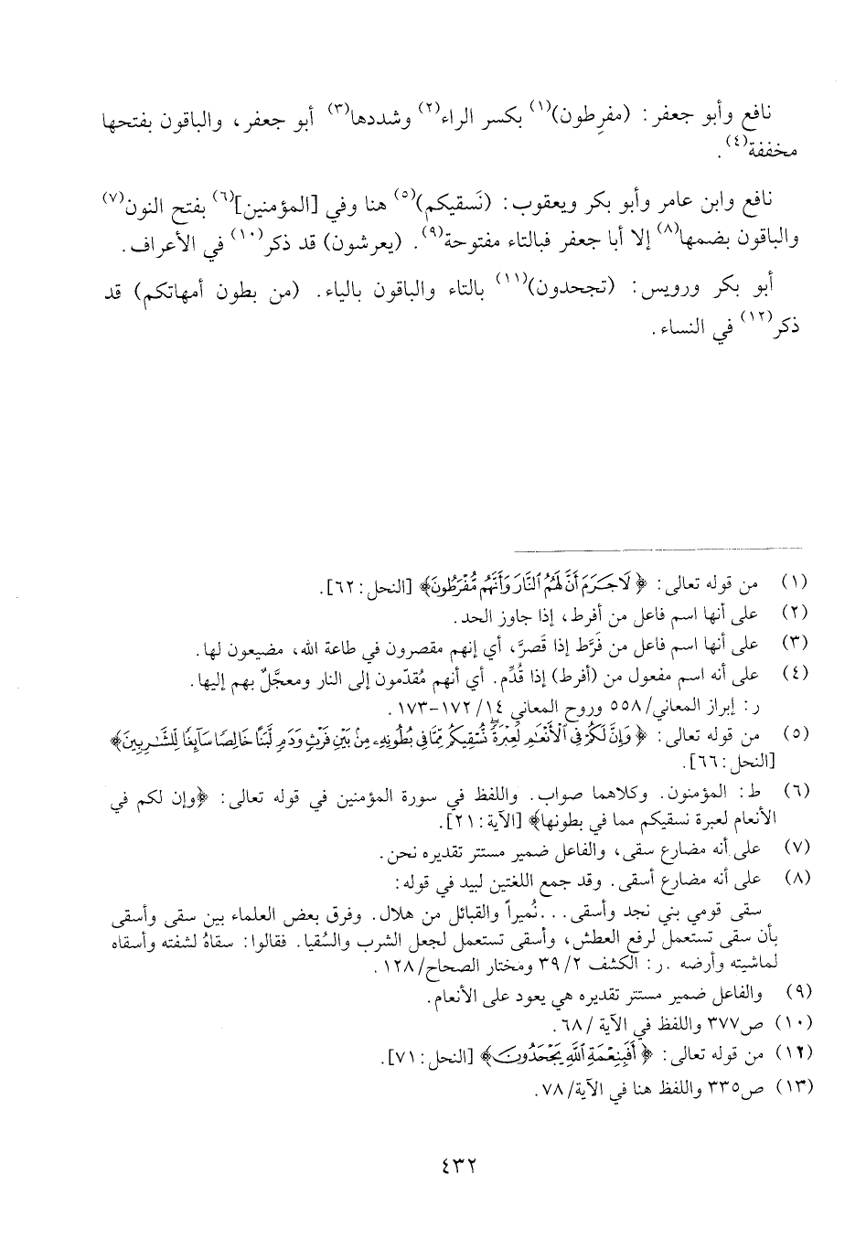 ابْن عَامر: (وَلَا تشرك) بِالتَّاءِ وَجزم الْكَاف، وَالْبَاقُونَ بِالْيَاءِ وَرفع الْكَاف. (بالغدوة) قد ذكر فِي الْأَنْعَام.