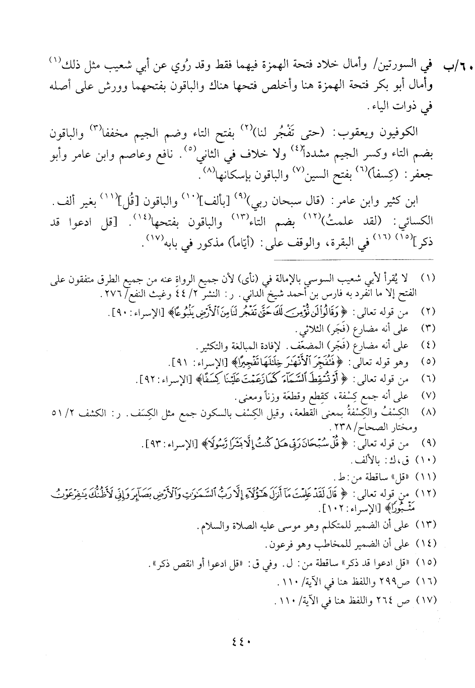 قَرَأَ أَبُو بكر وَالْكسَائِيّ بإمالة فَتْحة الْهَاء وَالْيَاء من (كهيعص) وَكَذَا قَرَأت فِي رِوَايَة أبي شُعَيْب على فَارس بن أَحْمد عَن قِرَاءَته وَابْن كثير وَأَبُو جَعْفَر وَيَعْقُوب وَحَفْص بفتحهما وَابْن عَامر وَحَمْزَة وَخلف بِفَتْح الْهَاء وإمالة الْيَاء، وَأَبُو عَمْرو بإمالة الْهَاء وَفتح الْيَاء. وَنَافِع أمال الْهَاء وَالْيَاء بَين بَين، وَتقدم مَذْهَب أبي جَعْفَر فِي السكت على الأحرف فِي أول الْبَقَرَة.
