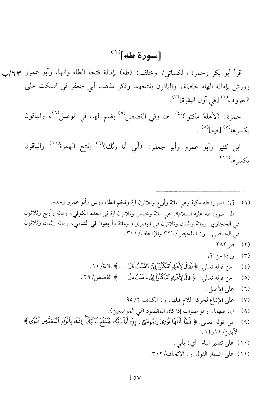 ورش أَبُو وَعَمْرو وَابْن عَامر ورويس: (ثمَّ ليقطع) بِكَسْر اللَّام. وورش وقنبل وَأَبُو عَمْرو وَابْن عَامر ورويس (ثمَّ ليقضوا) بِكَسْر اللَّام. وَابْن ذكْوَان (وليوفوا) وليطوفوا) بِكَسْر اللَّام فيهمَا، وَالْبَاقُونَ بِإِسْكَان اللَّام فِي الْأَرْبَعَة. (هَذَانِ) قد ذكر فِي النِّسَاء.