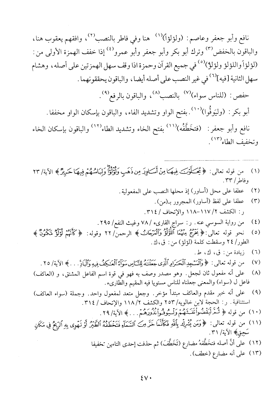 البزي: (سَحَاب) بِغَيْر تَنْوِين، وَالْبَاقُونَ بِالتَّنْوِينِ. ابْن كثير: (ظلمات) بالخفض وَالْبَاقُونَ بِالرَّفْع.