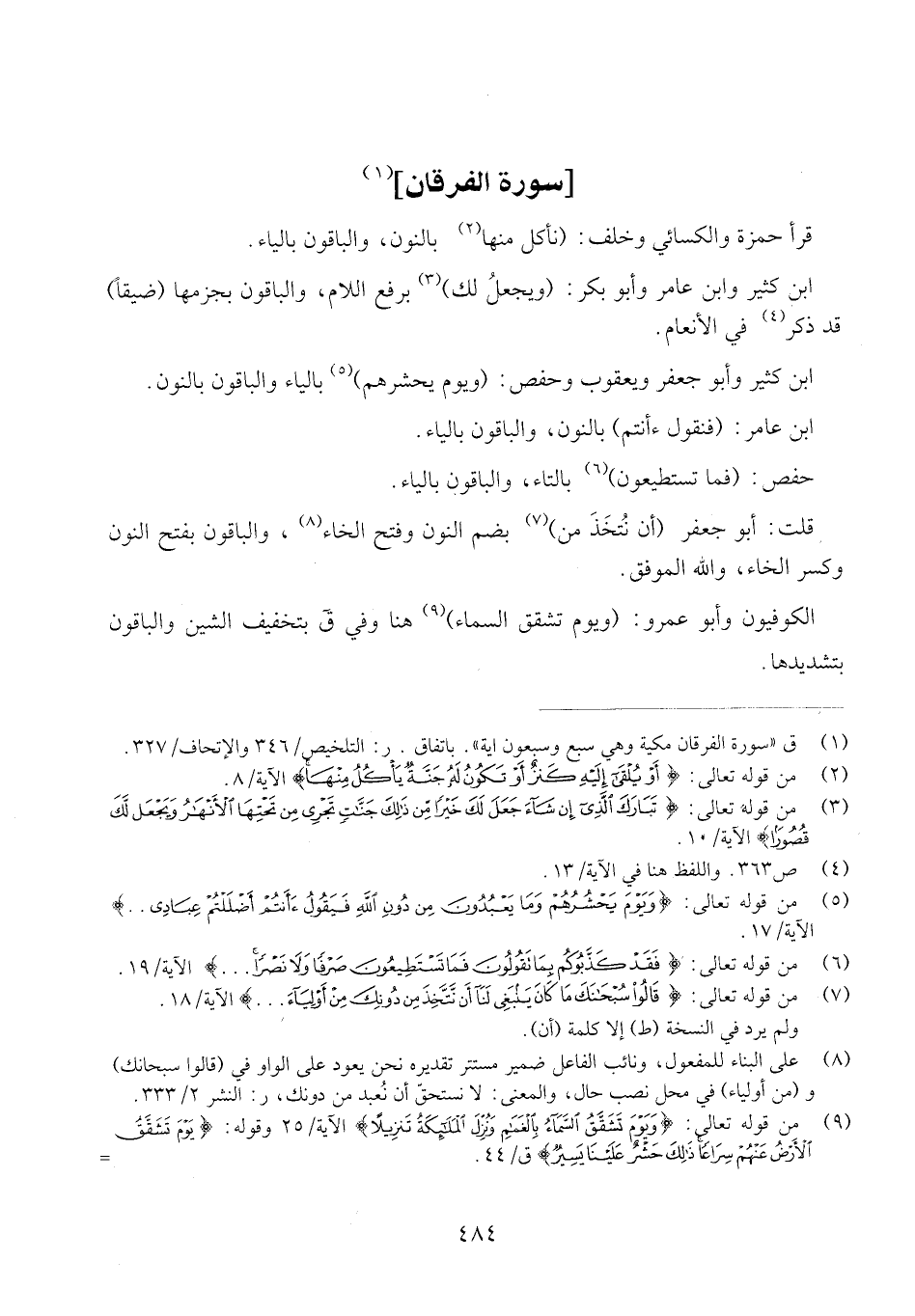 وفيهَا محذوفتان بل ثَلَاث (أتمدونن بِمَال) قَرَأَ حَمْزَة وَيَعْقُوب بنُون وَاحِدَة مُشَدّدَة، وَالْبَاقُونَ بنونين ظاهرتين. وَأثبت الْيَاء فِي الْحَالين ابْن كثير وَحَمْزَة وَيَعْقُوب وأثبتها فِي الْوَصْل نَافِع وَأَبُو جَعْفَر وَأَبُو عَمْرو.